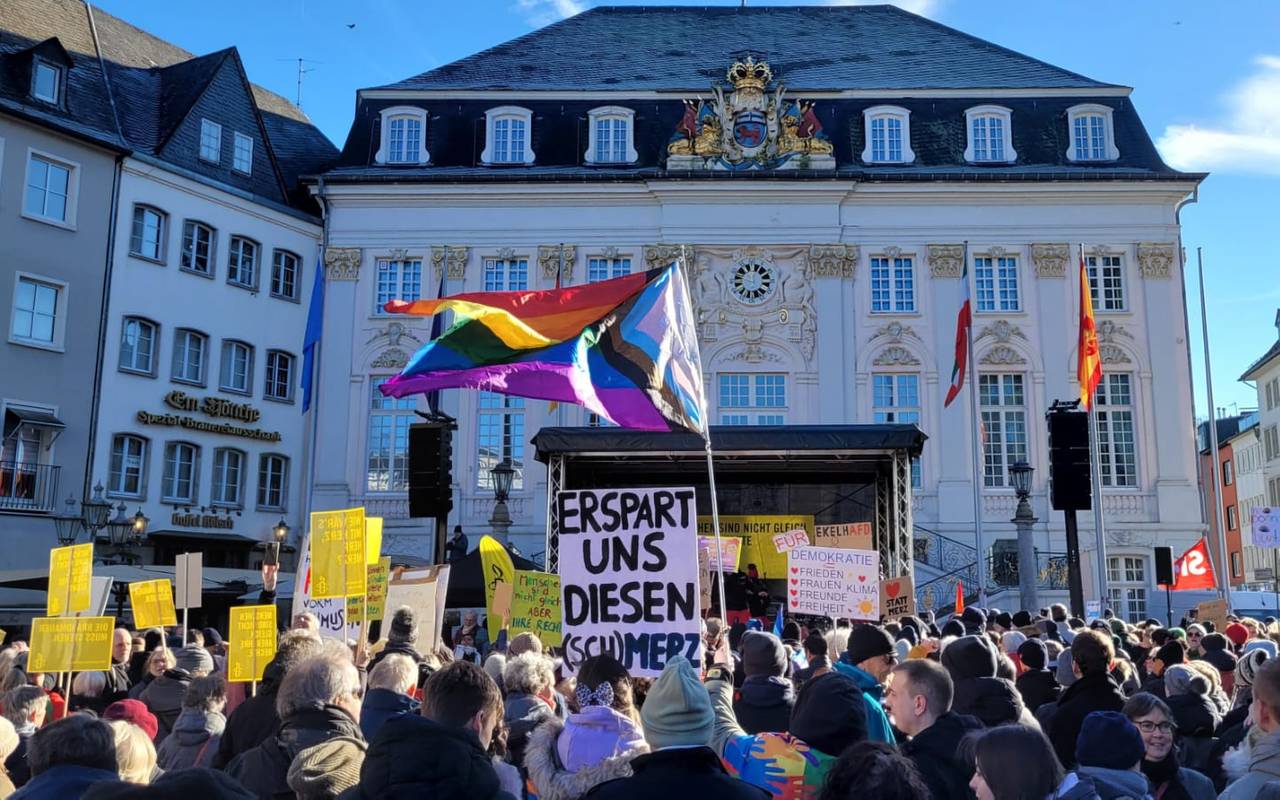 Es waren weit mehr gekommen als angemeldet - 10.000 Menschen haben gestern in Bonn gegen Rechts und für die Demokratie und die Vielfalt demonstriert. Auch viele Familien waren auf dem Marktplatz mit dabei.