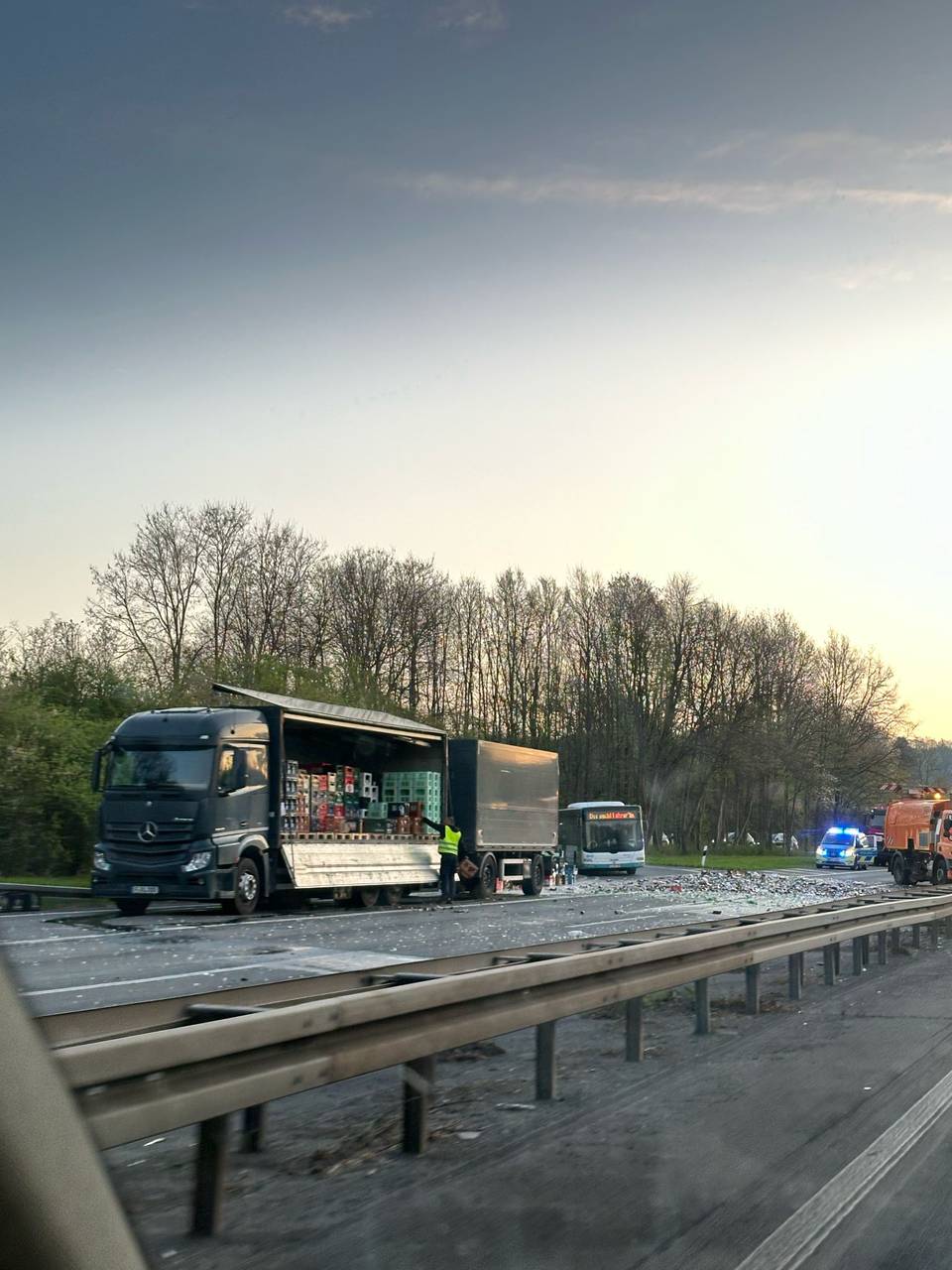 Die Scherben verteilten sich auf allen Fahrbahnen