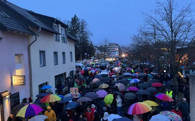 Schon vorher hatten sich die Demonstranten aus Eitorf und der ganzen Region am Bahnhof versammelt. Das Eitorfer "Bündnis gegen Rechts" hatte die Demo mit 200 Teilnehmenden angemeldet, teilte die Kreispolizei mit. Am Ende waren es gut 3000 Menschen, die gestern Abend in Eitorf gegen den Rechtsruck und die AfD auf die Straße gegangen sind. Anlass war neben dem bundesweiten Aufschrei gegen Rechts vor allem auch eine AfD-Veranstaltung im Eitorfer Bürgerzentrum. Der Demozug lief einmal am Veranstaltungsort vorbei auf den Marktplatz - dort sprach dann unter anderem Bürgermeister Rainer Viehof, es gab auch musikalische Beiträge. Die Polizei war mit vielen Einsatzkräften vor Ort. Sie zieht eine sehr positive Bilanz. Alles sei friedlich verlaufen. "Ich freue mich, dass alle Eitorfer Bürgerinnen und Bürger ihr Grundrecht auf Demonstrationsfreiheit wahrnehmen konnten", sagte der Einsatzleiter im Anschluss.