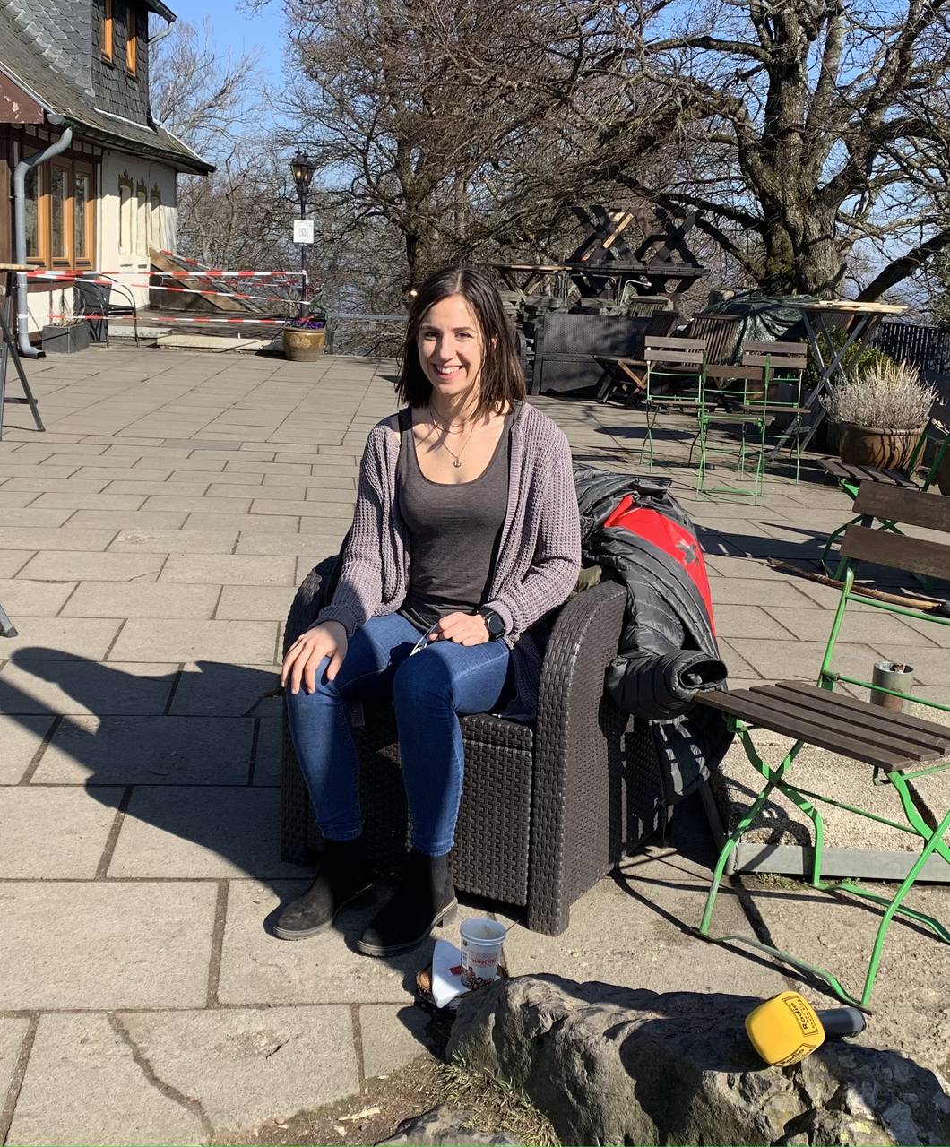 Einen der wohl schönsten Aussichtspunkte im Siebengebirge gibt es hier auf dem Gipfel des großen Ölbergs - auf der Terrasse vom Gasthaus auf dem Ölberg. Hier bekommt ihr natürlich auch Stärkung. Das Gasthaus ist vor allem bekannt für seine Wildgerichte - Wildbratwurst, Wildsalami oder auch Leber vom Reh bekommt ihr hier. Natürlich gibt es auch vegetarische Angebote wie zum Beispiel frischen gebackenen Schafs- oder Ziegenkäse.
