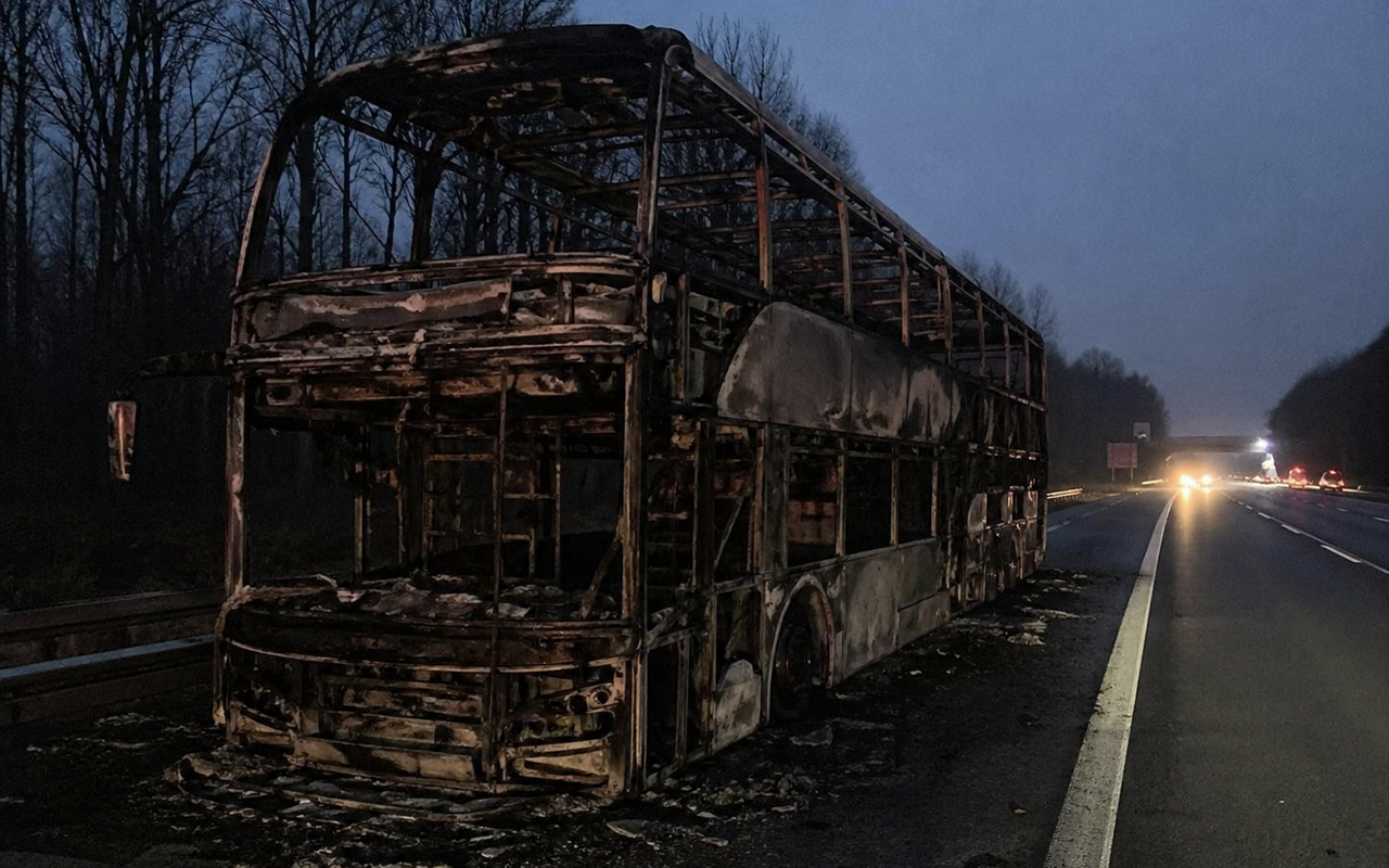 A3: Reisebus brennt bei Bad Honnef vollständig aus