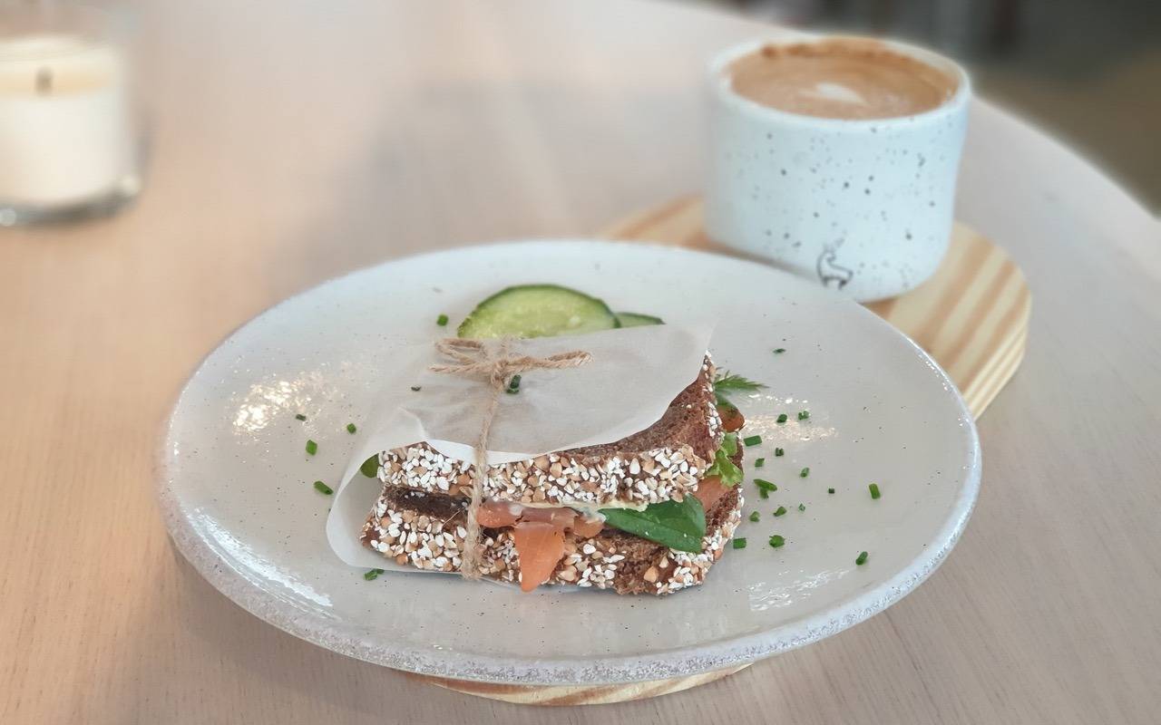 In dem kleinen runden Cafe stehen Stühle und Tische nah beieinander und an der kleinen Theke kann man schon die schönen, reichlich belegten Butterbrote anschauen. Da ist viel vegetarisches / veganes dabei, aber aufgrund des nordischen Konzeptes, findet man auch einiges an Fisch. Das soll auch ein kleiner Schwerpunkt werden und unterschiedet sich so auch von anderen Angeboten. Dazu kommen Suppen oder andere kleine Gerichte zu Mittag. Aber die beiden Betreiberinnen probieren da noch aus und schauen, was ihre Zielgruppe am Liebsten isst. Neben den Butterbroten gibt es natürlich auch ein paar Kuchen und guten Kaffee. So lässt es sich also vortrefflich in dem neuen Dreh- und Angelpunkt am Rande der Südstadt sitzen und auf das alte Regierungsviertel blicken. Schon in den ersten Tagen wird das Cafe gut angenommen und auch unsere Gastrobloggerin Karin Krubeck von Bonngehtessen hat sich wohlgefühlt und empfiehlt die Neueröffnung gerne weiter.