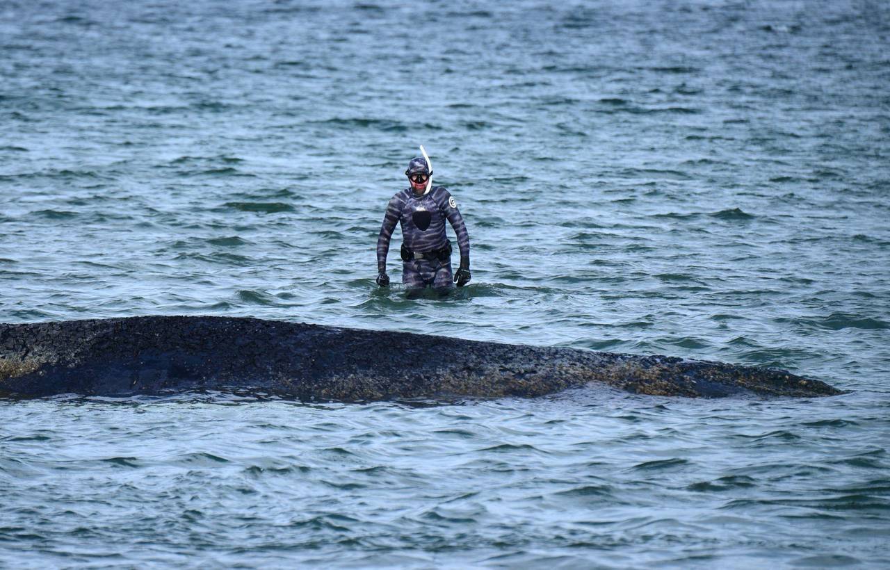 Vor Beginn des Rettungsversuchs näherte sich der Biologe Robert Marc Lehmann dem festsitzenden Tier. Dieses reagierte mit heftigen Bewegungen und lautem Schnauben. Der Meeressäuger stecke im flachen Wasser fest. Es ist so flach, dass der Taucher dort stehen kann, wie ein dpa-Reporter erklärte.