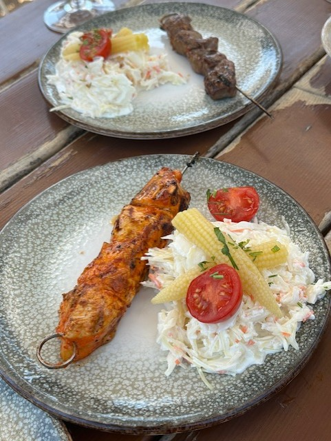 Zwischen Olivenbäumen, Lichterketten und stilvollen Holzmöbeln trifft man sich zum entspannten Essen, Trinken und Plaudern – ob mit Freunden, Familie oder einfach zum runterkommen nach einem langen Tag.