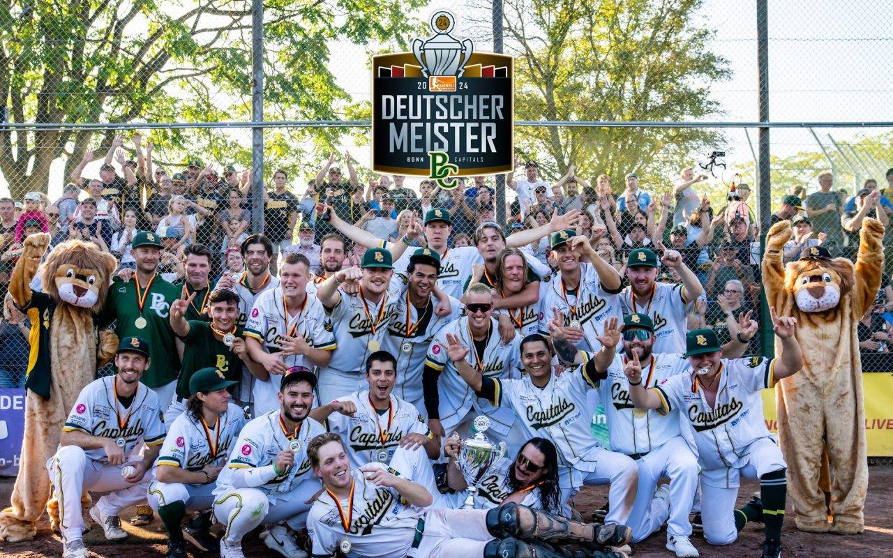 Sie haben es geschafft - die Bonn Capitals sind deutscher Meister im Baseball. Sie besiegten die Untouchables Paderborn im alles entscheidenden fünften Spiel im Stadion in der Rheinaue mit 2 zu 0.