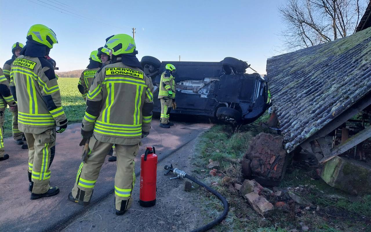 Bornheim: Glatteisunfall - Auto rutscht in Vordach