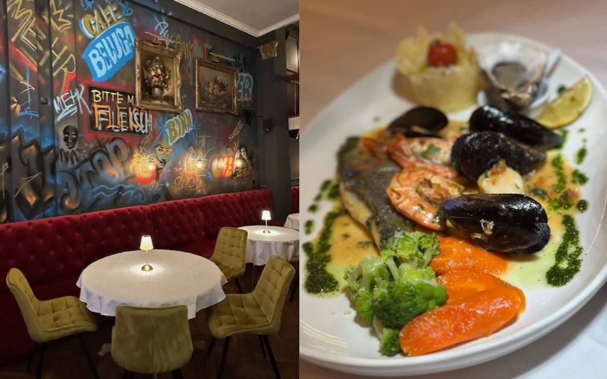 Kulinarisch setzt das Café Beluga Bonn auf Fisch und Fleisch. Ein Dry-Age-Schrank steht bereits bereit und soll zur Schatzkammer des Hauses werden. Schon jetzt kommen frisch und sauber zubereitete Gerichte auf die Teller: Auberginenröllchen auf Garnelenragout, Beef Tatar auf Brioche oder eine Meeresfrüchteplatte mit Dorade, Muscheln, Garnelen und sogar Austern. Schön angerichtet, klar im Geschmack und mit viel Handwerk.