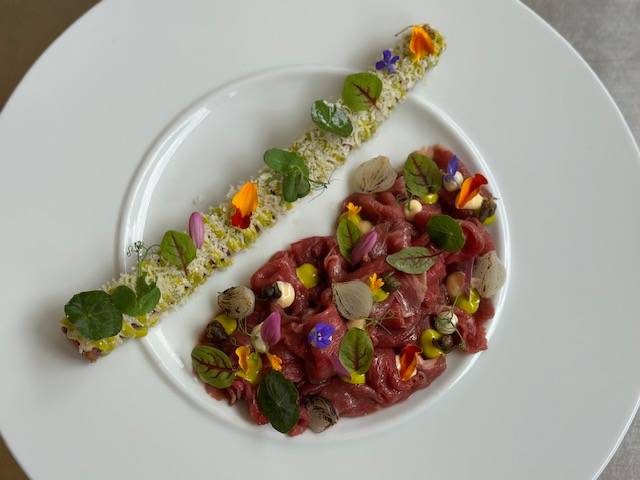 Tagsüber gibt es eine Karte, die die Museumsbesucher abholen soll: von Lasagne über Burger bis zu einem schlichten Teller Pasta ist alles dabei - und beliebt! Trotzdem sagt der neue Betreiber Kosmas: 'Was soll uns hindern, abends ein anderes Publikum anzusprechen und Fine Dining anzubieten?' Sein Chefkoch Rene Weisbarth hat zuletzt im Marriott gekocht, nun ist er hier der Chef der zubereiteten Speisen und hat dabei freie Hand.