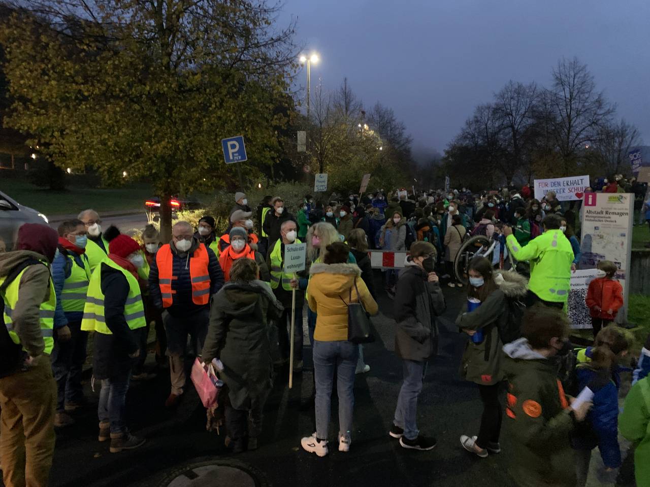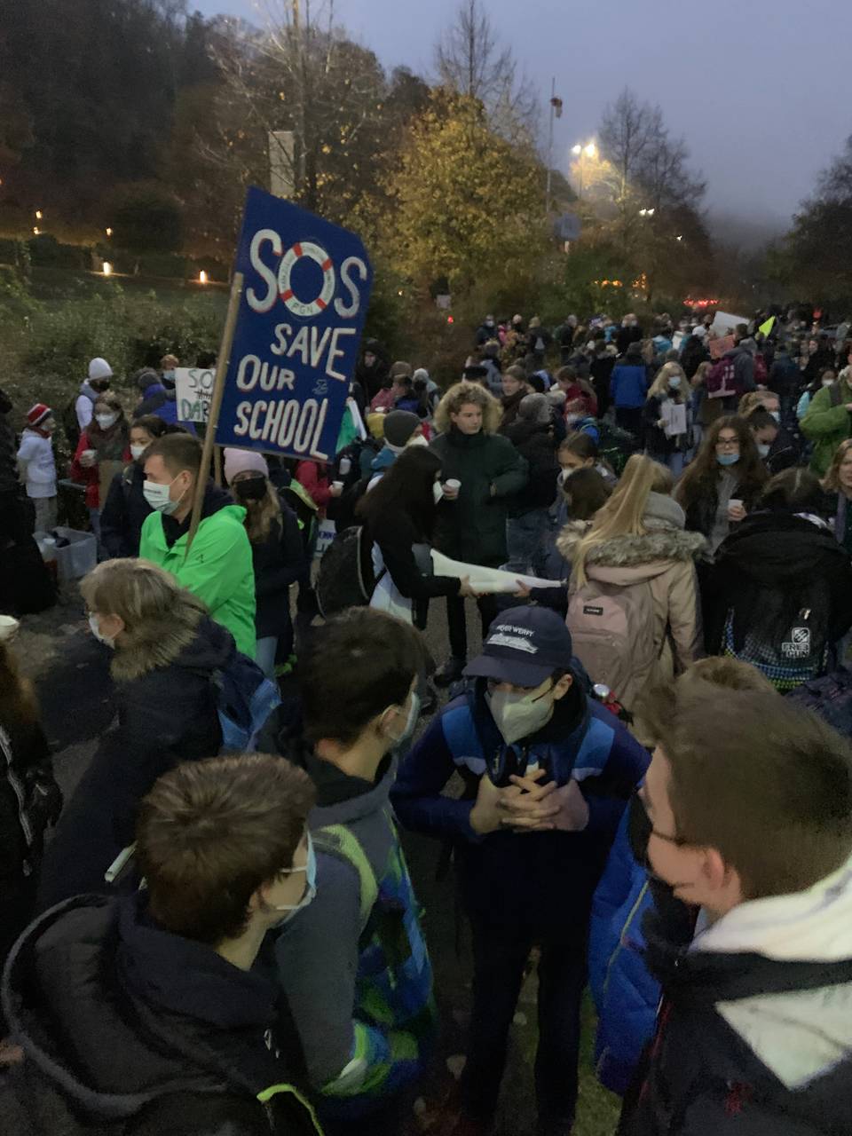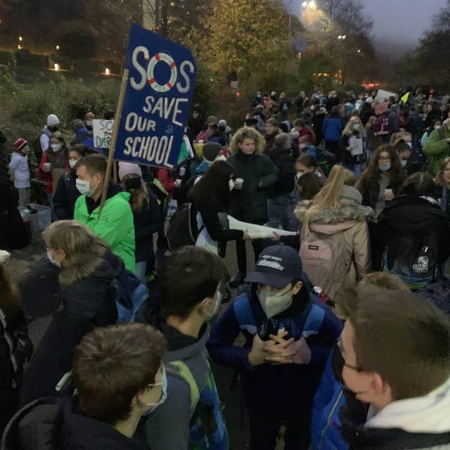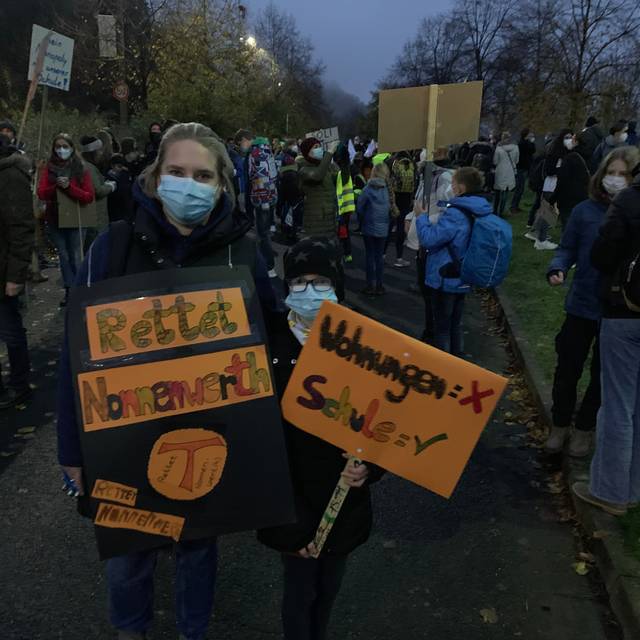 Hintergrund ist, dass das Gebäude eigentlich kernsaniert werden muss, weil unter anderem viele Mängel im Brandschutz festgestellt wurden. Sonst könne der Schulbetrieb dort nicht dauerhaft erhalten werden. Schüler und Eltern fürchten aber, dass der neue Träger des Gymnasiums nicht genug tun könnte, um den Erhalt der Schule zu sichern. Die Schule musste kurzfristig wegen der Mängel geschlossen werden, dann tauchte wohl ein Dokument auf, das vorsah, aus dem Schulgebäude Wohnungen zu machen. Die Schülerinnen und Schüler und ihre Eltern forden nun, dass die Trägerschaft für die Schule abgegeben werden soll. Die Demonstration startete um 7 Uhr am Bahnhof Rolandseck und führte über die B9 nach Nonnenwerth. CM