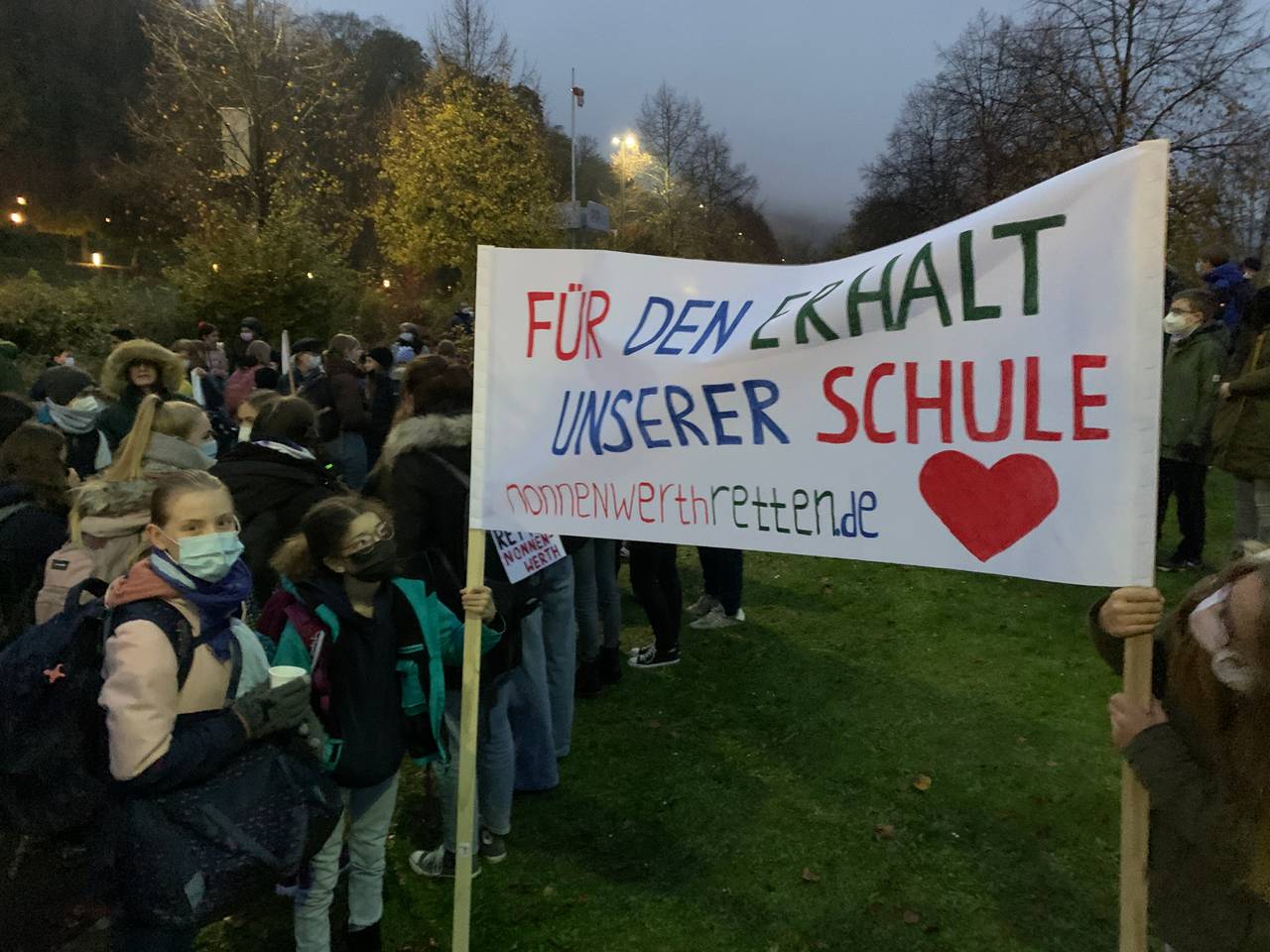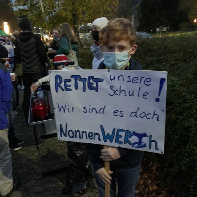 Schülerinnen und Schüler des Franziskus Gymnasiums Nonnenwerth bei Remagen rufen heute Morgen zu einer Demonstration auf. Sie wollen sich damit für den Erhalt ihrer Schule einsetzen, der nach eigenen Angabe auf der Kippe stünde.