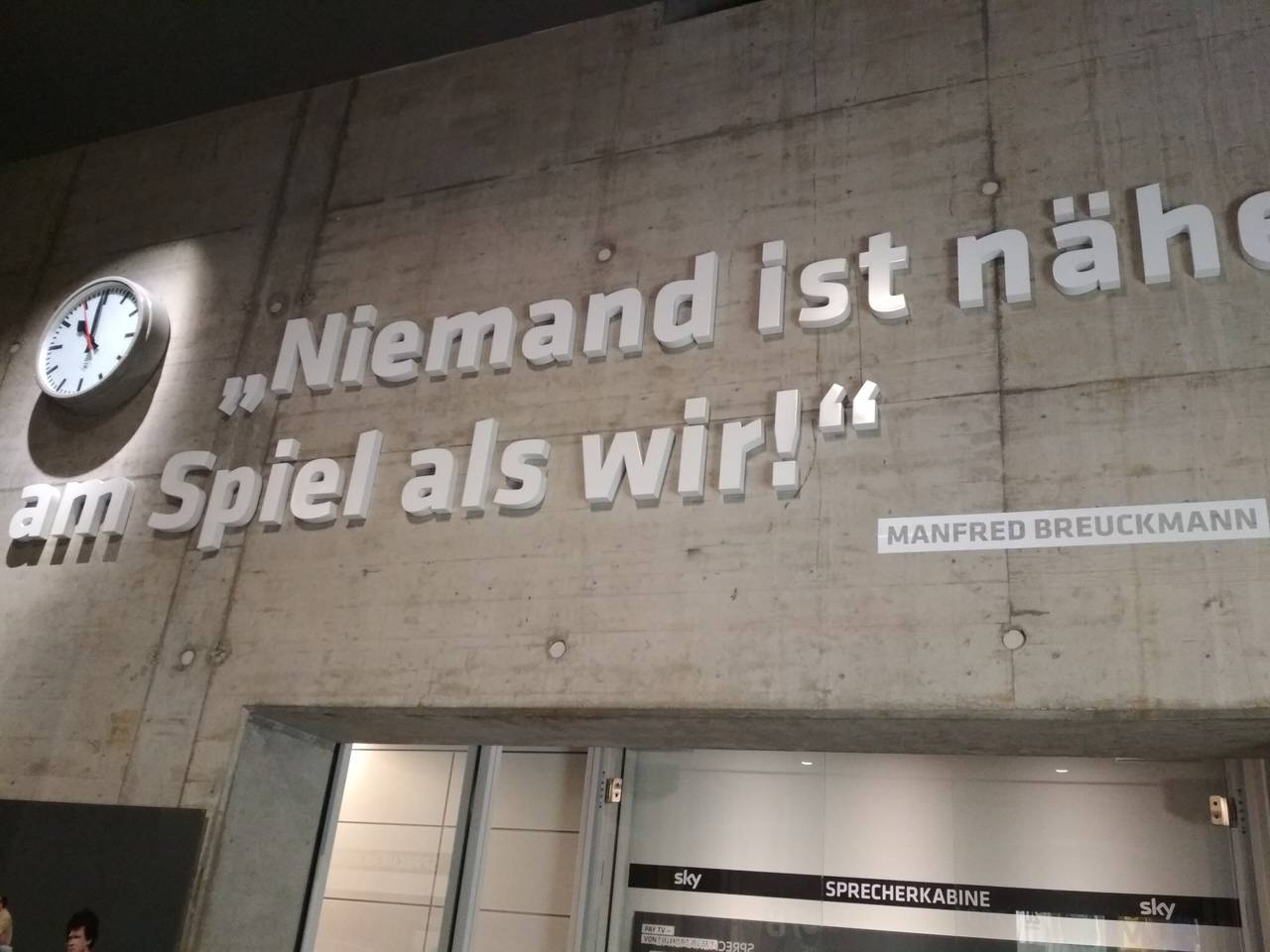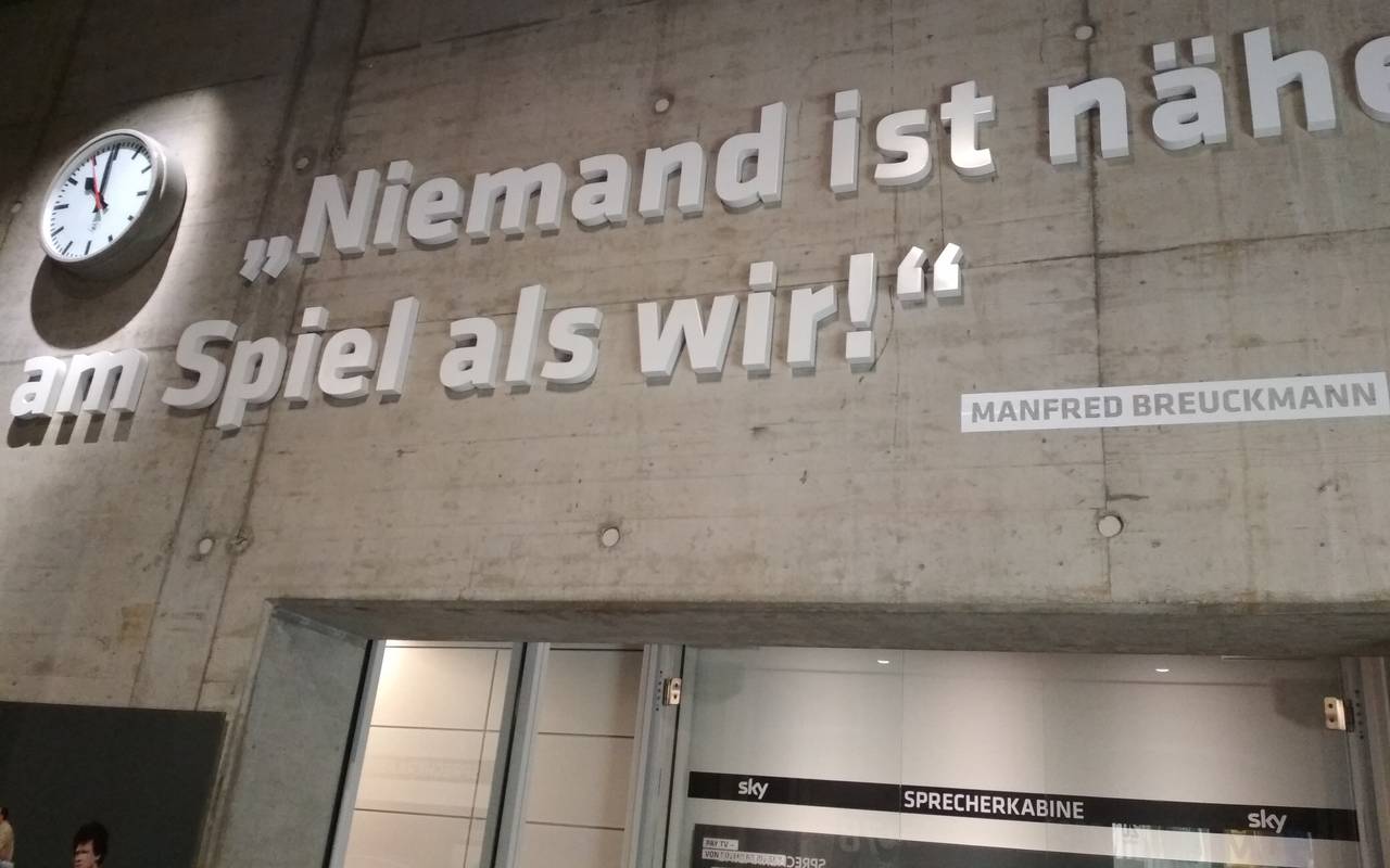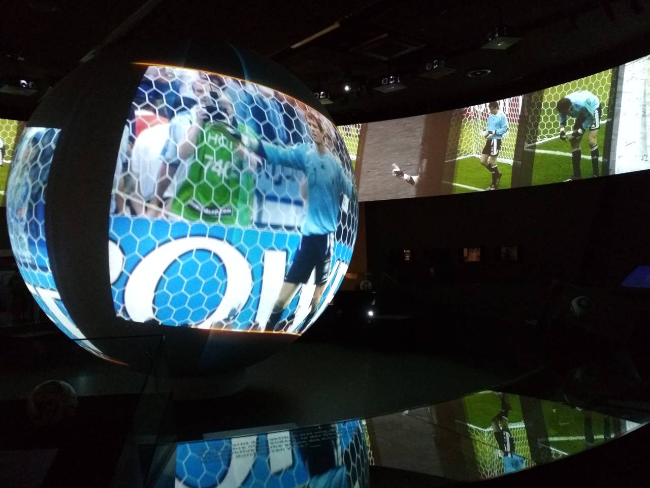 Am Ende der Rolltreppe, vorbei an zahlreichen (aufgemalten) Fans, geht es durch den Spielertunnel und dann direkt hinein ins Jahr 1954. Hinter Glas steht dort der Original WM Ball aus dem legendären Finale von Bern. Im Fußballmuseum gibt es viel Historie. Große Fußballmomente und bittere Niederlagen. Im Fußballmuseum unterhält sich Jogi Löw mit einem seiner Vorgänger Sepp Herberger. Via Hologramm kann der Besucher diese beiden Trainergröße in einem 3D-Kino sehen. Dazu Thomas Müller, Leroy Sane, Paul Breitner und Lothar Matthäus. Von überall her schallen legendäre Sportreportagen ...aus dem Hintergrund müsste Rahn schießen....