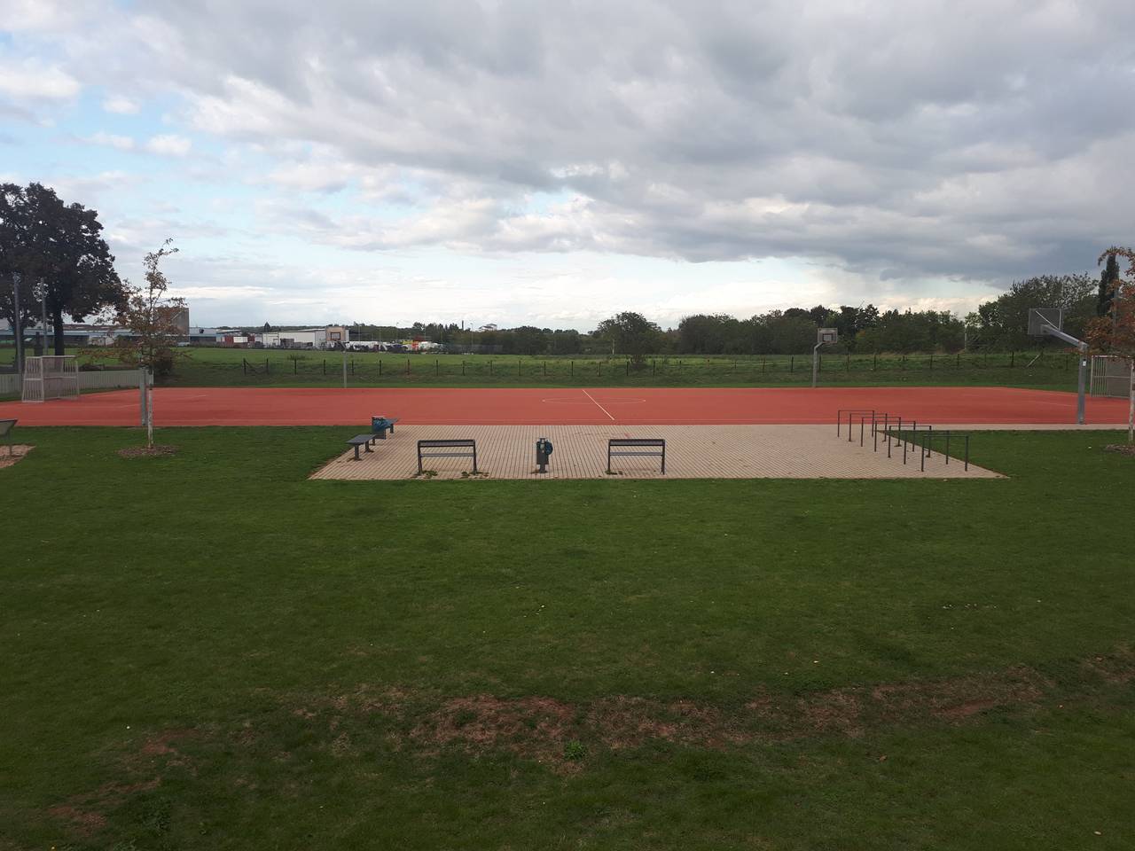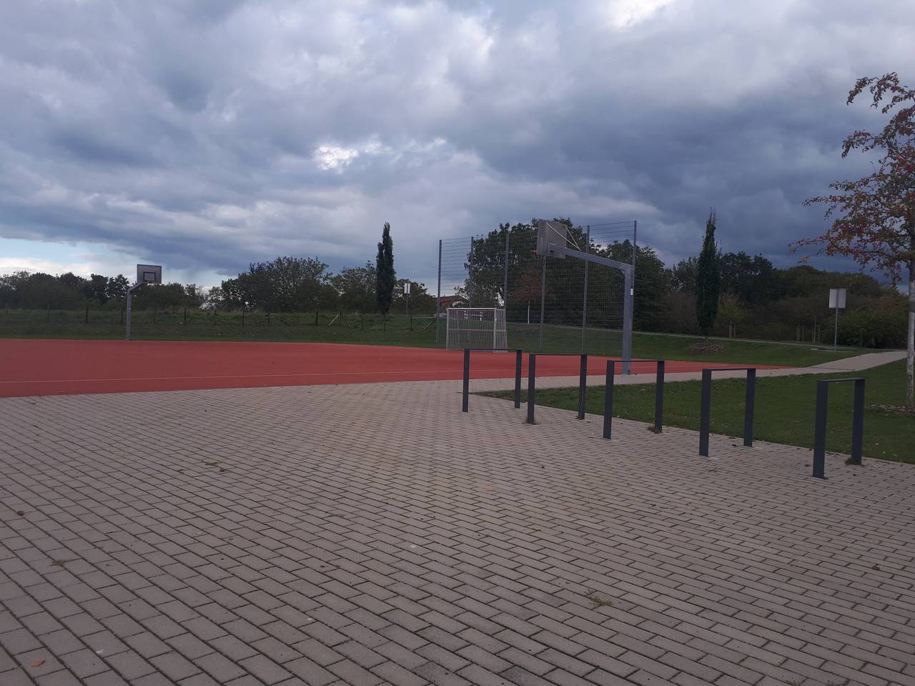 Die größte Vielfalt bietet der Calistenics Platz an der Buschdorfer Straße in Buschdorf. Hier gibts ganze vier Basketballkörbe und ein komplettes Handballfeld, das natürlich genauso gut als Street Football Platz genutzt werden kann. Außerdem gibts hier noch einen kleinen Calistenicsbereich für Turn- und Kraftausdauerübungen jeder Art. Gespielt wird auf einem sehr neu wirkenden Tartanbelag.