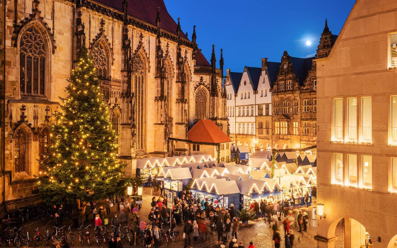 Münsters Innenstadt verwandelt sich mit sechs unterschiedlichen Weihnachtsmärkten in eine Art Winter-Wonderland.