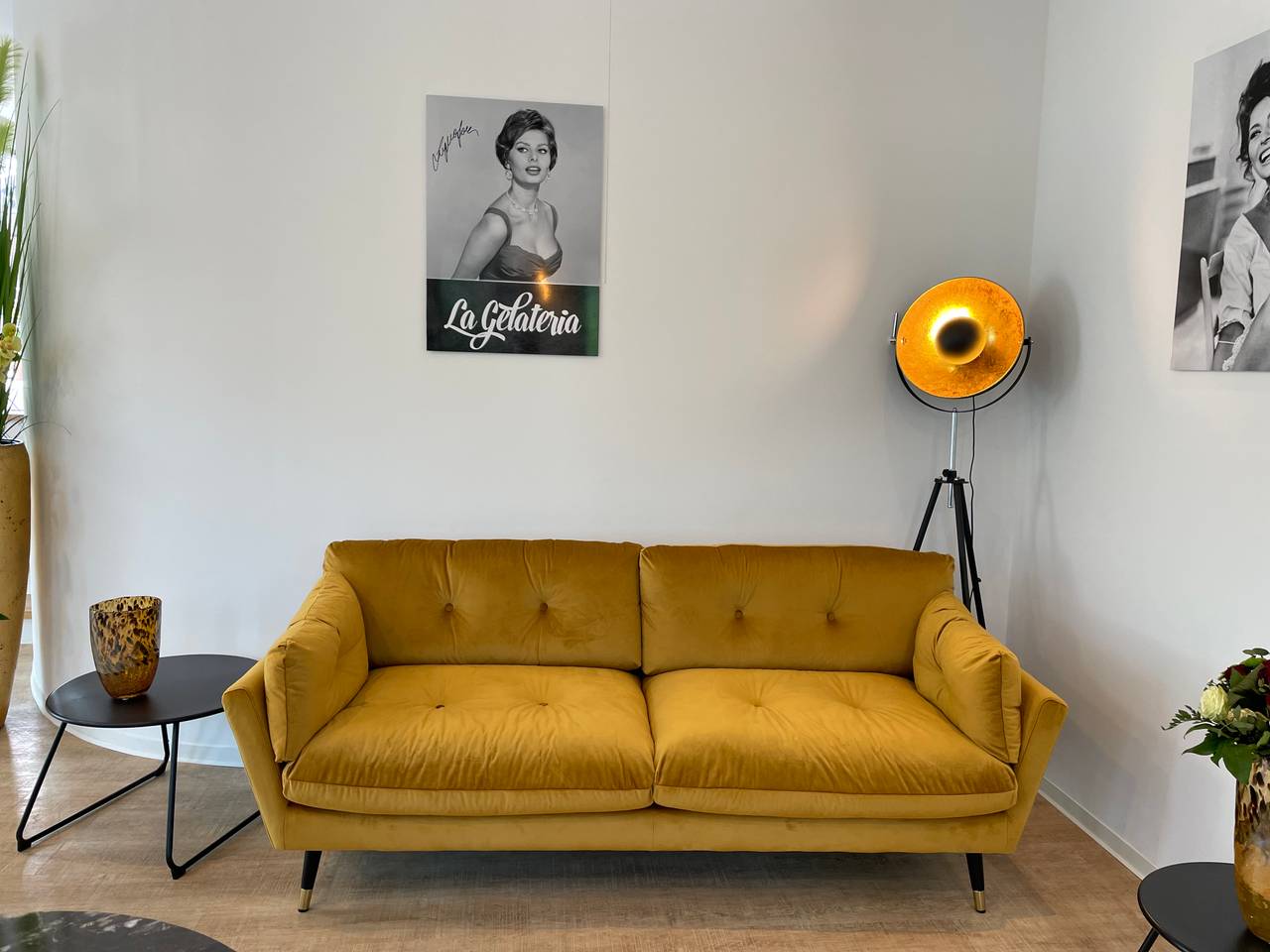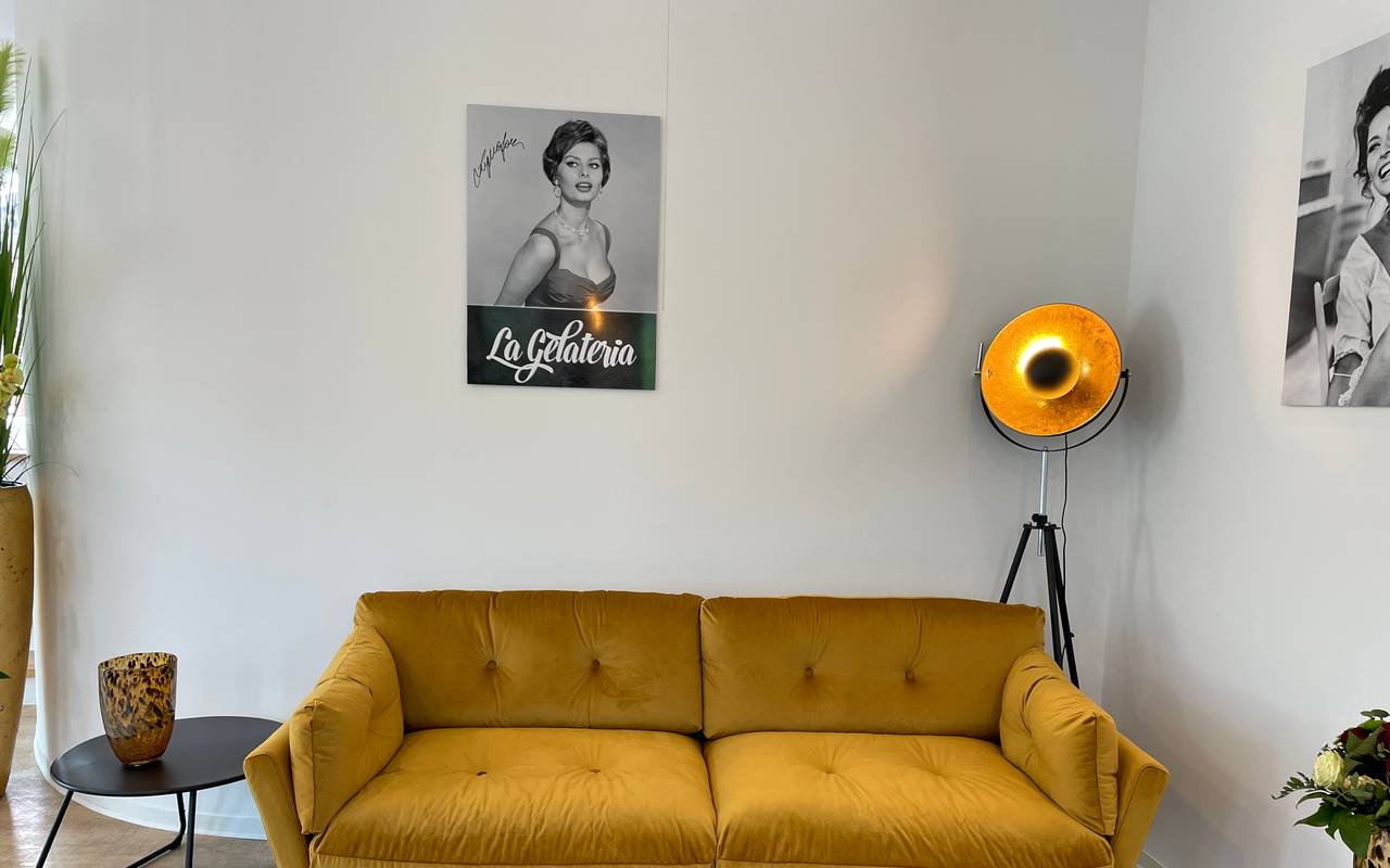 Die alte Patina der italienischen Eisdielen aus den 70ern ist passé und stattdessen gibt es einen wunderschönen Innenraum mit samtartigen Möbeln, einem großen Sofa, großen Blumendekorationen überall und vor allem gibt es viel Platz und man steht sich nicht auf den Füßen.