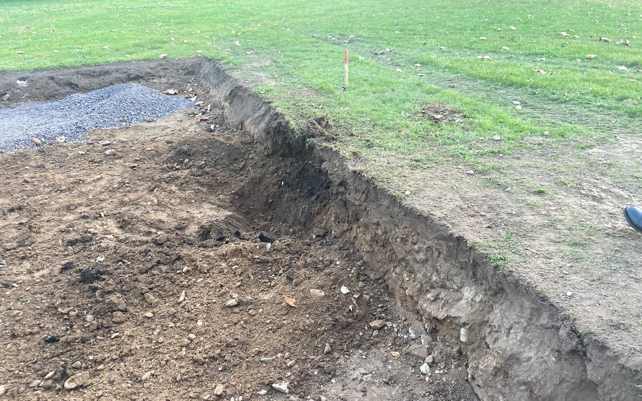 Heute rücken die Bagger an und graben an der mutmaßlichen Bombenstelle. Das dauert nach Angaben der Gemeinde aber bis morgen Vormittag – wohl, weil die Stelle sehr nah an einer Häuserfassade liegt. Erst morgen Vormittag besteht dann nach einigen Monaten Klarheit, ob es sich um eine Bombe handelt. Die dann nötigen Evakuierungspläne stehen schon. Die Gemeinde ist also vorbereitet, auch auf eine mögliche Sprengung der Bombe.