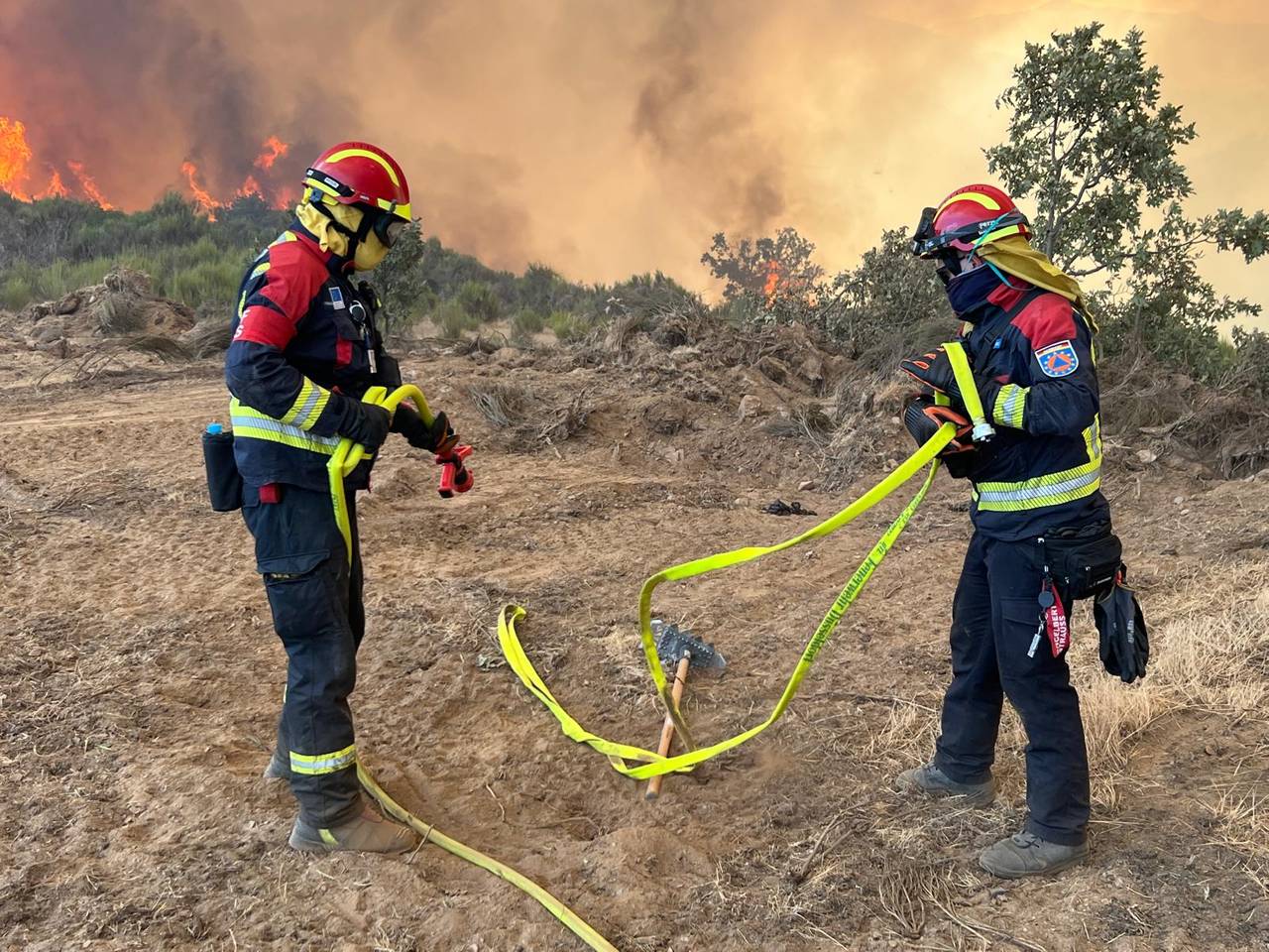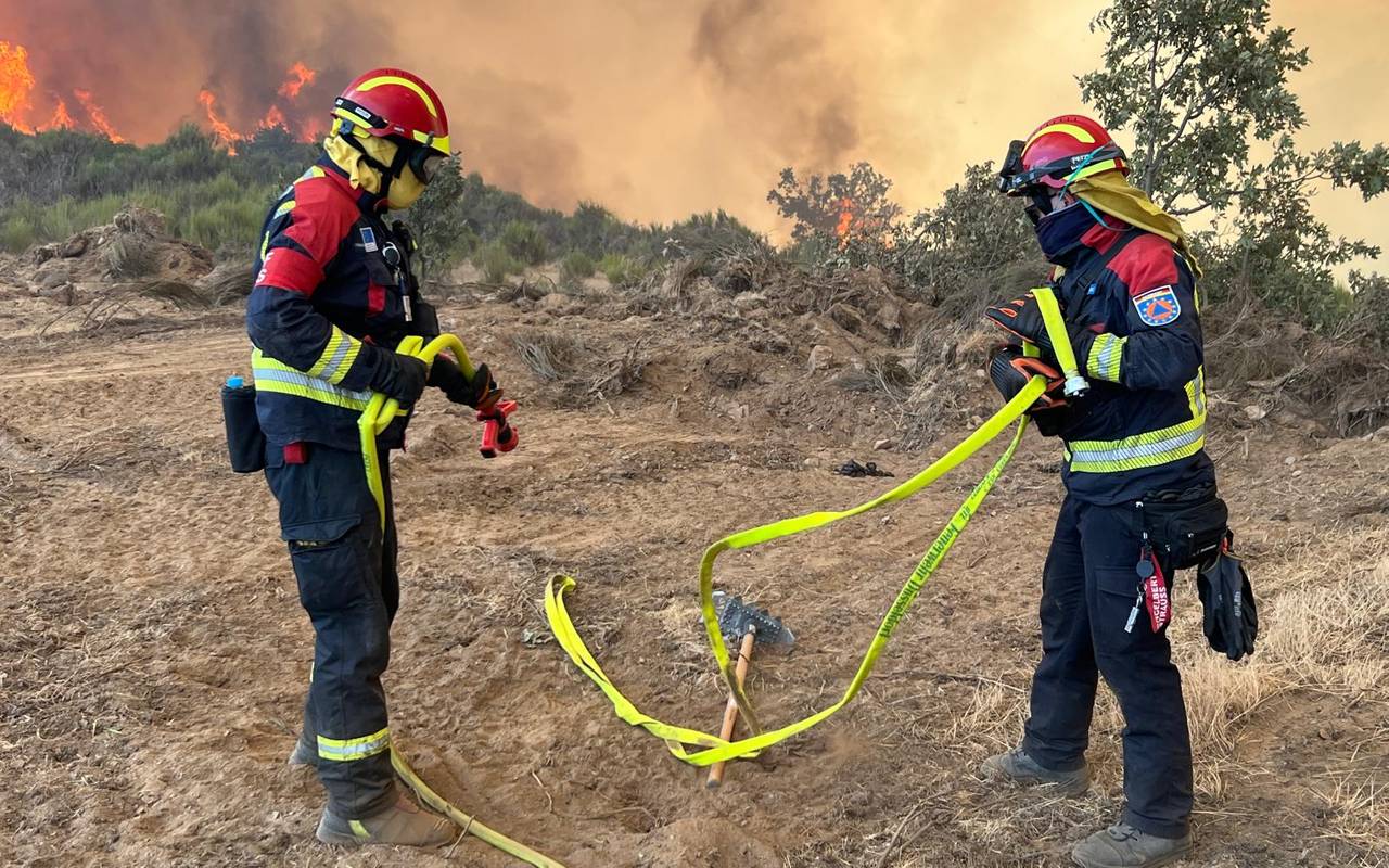 Feuerwehren von hier schützen Dorf in Nordspanien