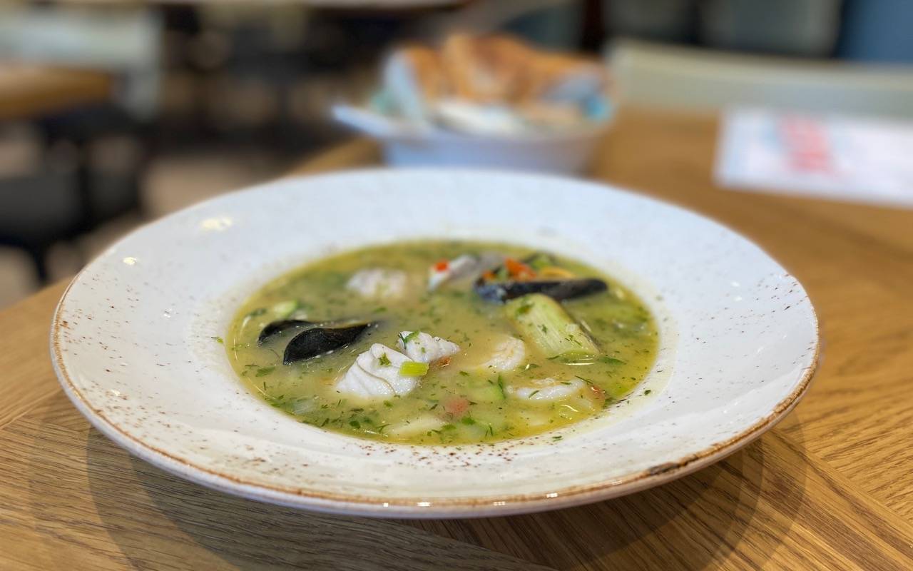 Unsere Gastrobloggerin Karin Krubeck von Bonngehtessen hat einige Speisen probieren dürfen und war sehr angetan: eine tolle gegrillte Dorade, Lachsrillette und das Sandwich waren schon gut, aber absolut begeistert war sie von der Fischsuppe. Eine einfache klare Fischbrühe mit diversen Meerestieren, auch abhängig vom Fang und der Lieferung.
