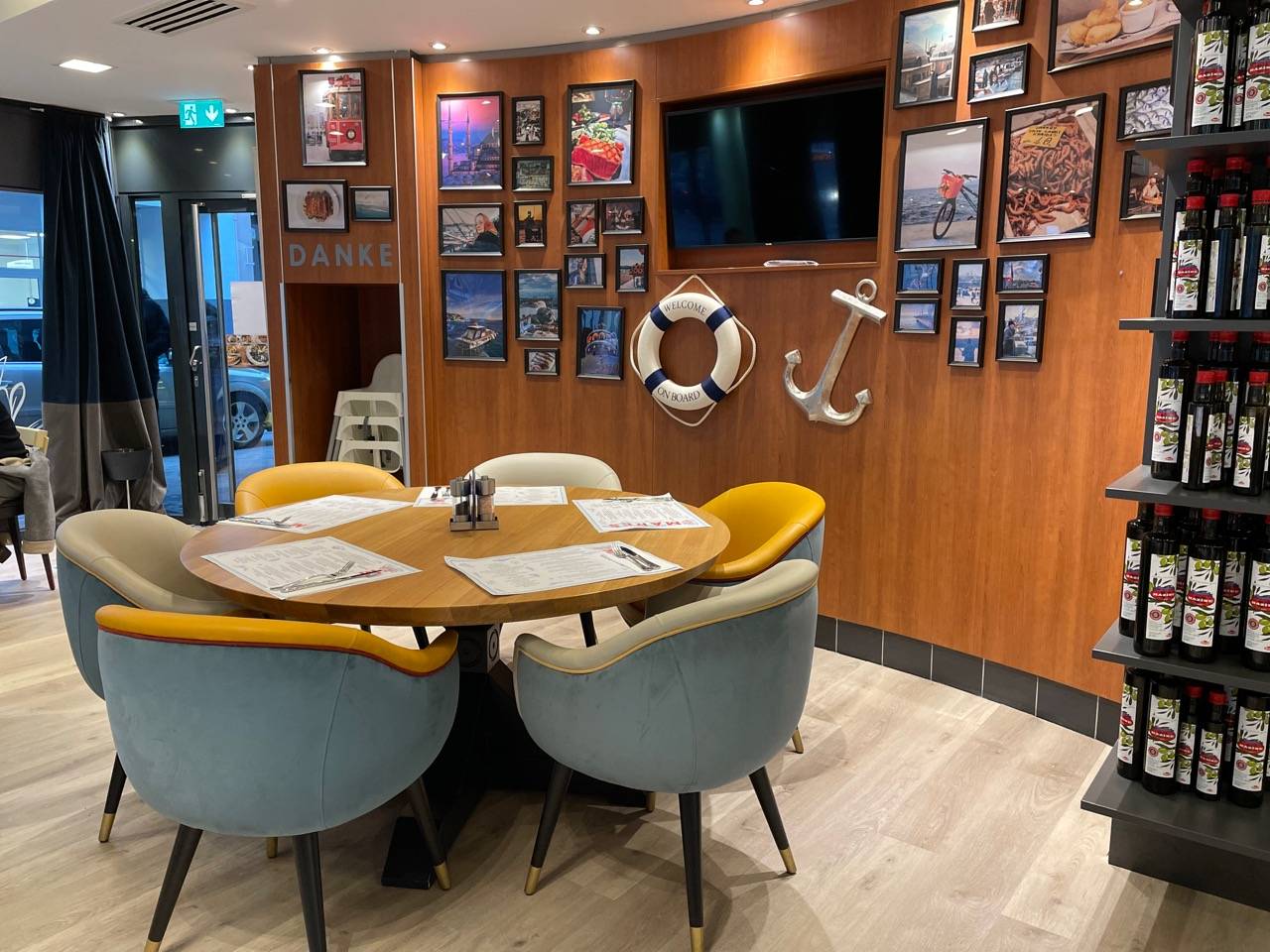 In Bad Godesberg hat auf der Koblenzer Straße das "Mares" neu eröffnet. Ein türkisches Fischrestaurant mit mediterranen Spezialitäten. Große Glasfronten wurden in das Restaurant eingelassen, drinnen ein tolles bequemes Sofa entlang der Fensterfront und im Sommer wird es draußen eine Terrasse geben. Die Inneneinrichtung ist modern, geschmackvoll, mediterran, hat bequeme Sofaecken, normale Esstische und Stühle aber auch höhere Bartische.