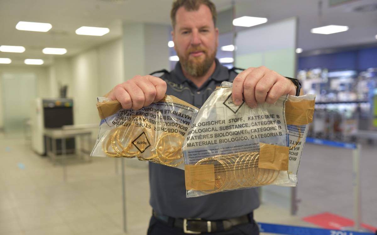 Den meisten Schmuck hatte ein Frau mit ihren zwei Kindern dabei: In deren Gepäck fand der Zoll ein halbes Kilogramm Goldschmuck im Wert von 30.000 Euro. Neben viel Gold haben auch die Funde von Waffen zugenommen - allein in den Sommerferien wurden acht verbotene Gegenstände sichergestellt.