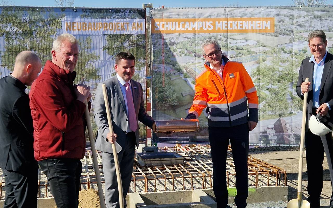 Es ist das größte Investitionsvorhaben der Stadt Meckenheim jemals – das Neubauprojekt des neuen Schulcampus. Die Stadt Meckenheim hat heute Mittag dazu die offizielle Grundsteinlegung gefeiert. Traditionell wurde dabei eine Zeitkapsel von Meckenheims Bürgermeister Holger Jung und weiteren Beteiligten des Projekts vergraben.