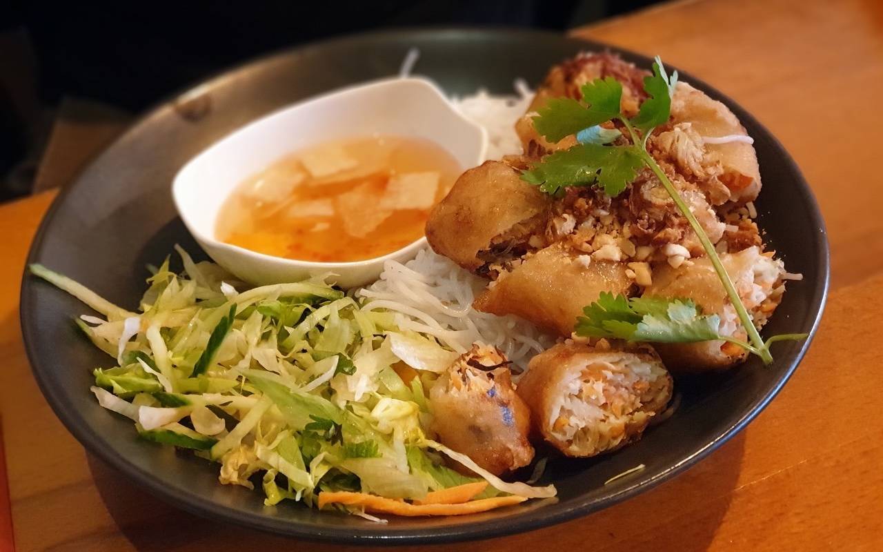 Der Innenraum ist schön dekoriert mit tollen schwarz-weiß Zeichnungen und Fotografien aus einem traditionellen Vietnam. Dazu Lampen, die einen Bambuslook vermitteln. Die Gerichte spiegeln die traditionelle Küche wieder, wie sie aktuell im Trend ist. Da sind die Nudelsuppe Pho, gebratene Nudelgerichte und natürlich auch die frischen Frühlingsrollen mit einer Vielzahl an Kräutern. Egal, ob zum Mittagstisch oder abends, hier lässt sich für jeden Besucher etwas finden.