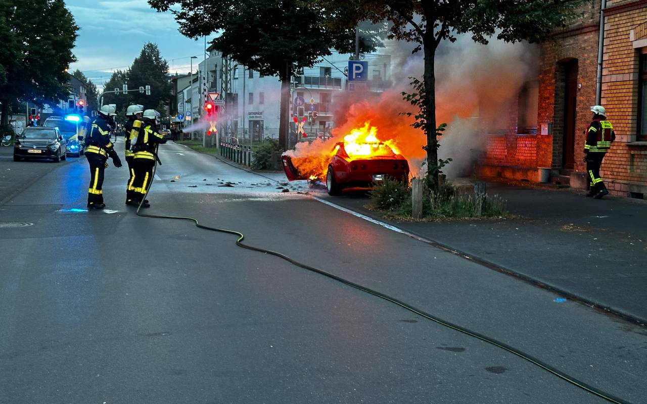 Da brannte eine rote Corvette aus dem Jahr 1977, die in einer Parkbucht vor einem Einfamilienhaus abgestellt war. Es bestand auch Gefahr auch für das Gebäude, berichtet die Feuerwehr. Deshalb wurde der brennende Sportwagen gelöscht und zwischendurch immer wieder auch die Fassade des Hauses gekühlt. So konnte verhindert werden, dass die Flammen übergriffen. Der 47 Jahre alte Oldtimer wurde aber fast komplett zerstört. Zur Brandursache ermittelt jetzt die Polizei.