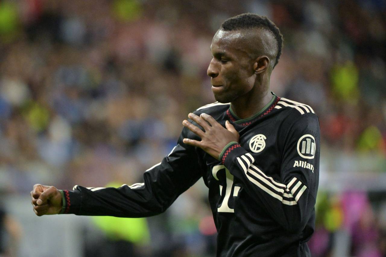 Nicolas Jackson jubelt nach seinem ersten Tor für Bayern.