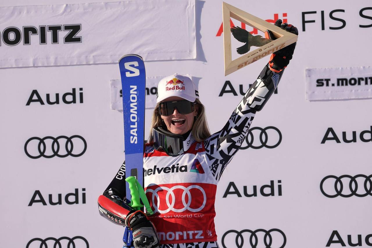 Aicher feierte ihren insgesamt dritten alpinen Weltcup-Sieg gemeinsam mit Vonn und der drittplatzierten Sofia Goggia aus Italien auf dem Podest mit einer ausgiebigen Sektdusche.