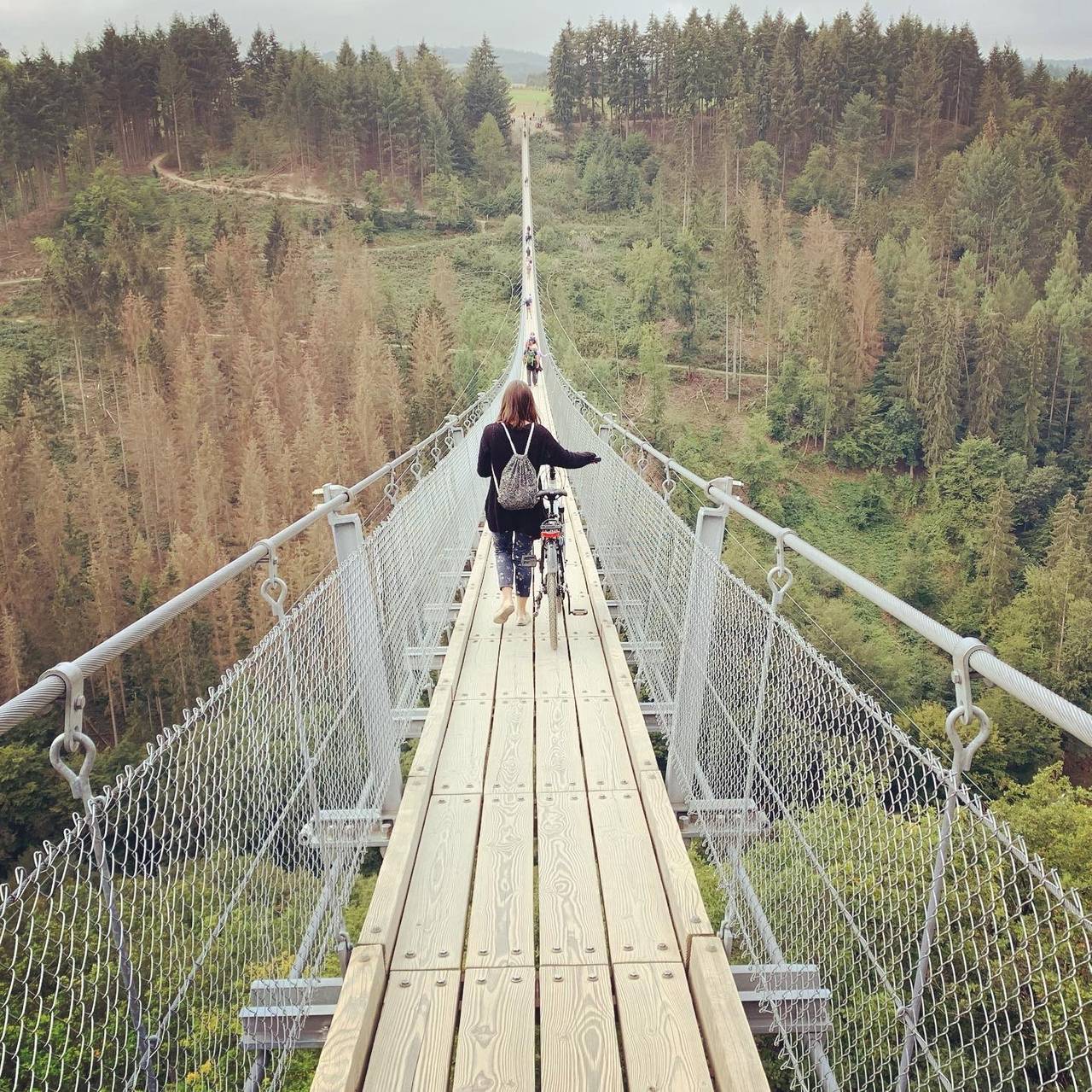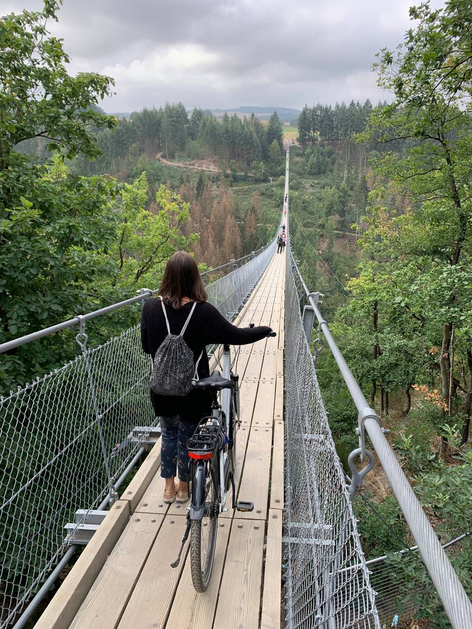 Heute nehmen wir euch mit auf die wahrscheinlich schönste Hängeseilbrücke der Welt: Wir laufen über die Geierlay-Hängeseilbrücke. Volker und Jana haben das mit einer 35km langen E-Bike-Rundtour verbunden, die auch über die Brücke führt.