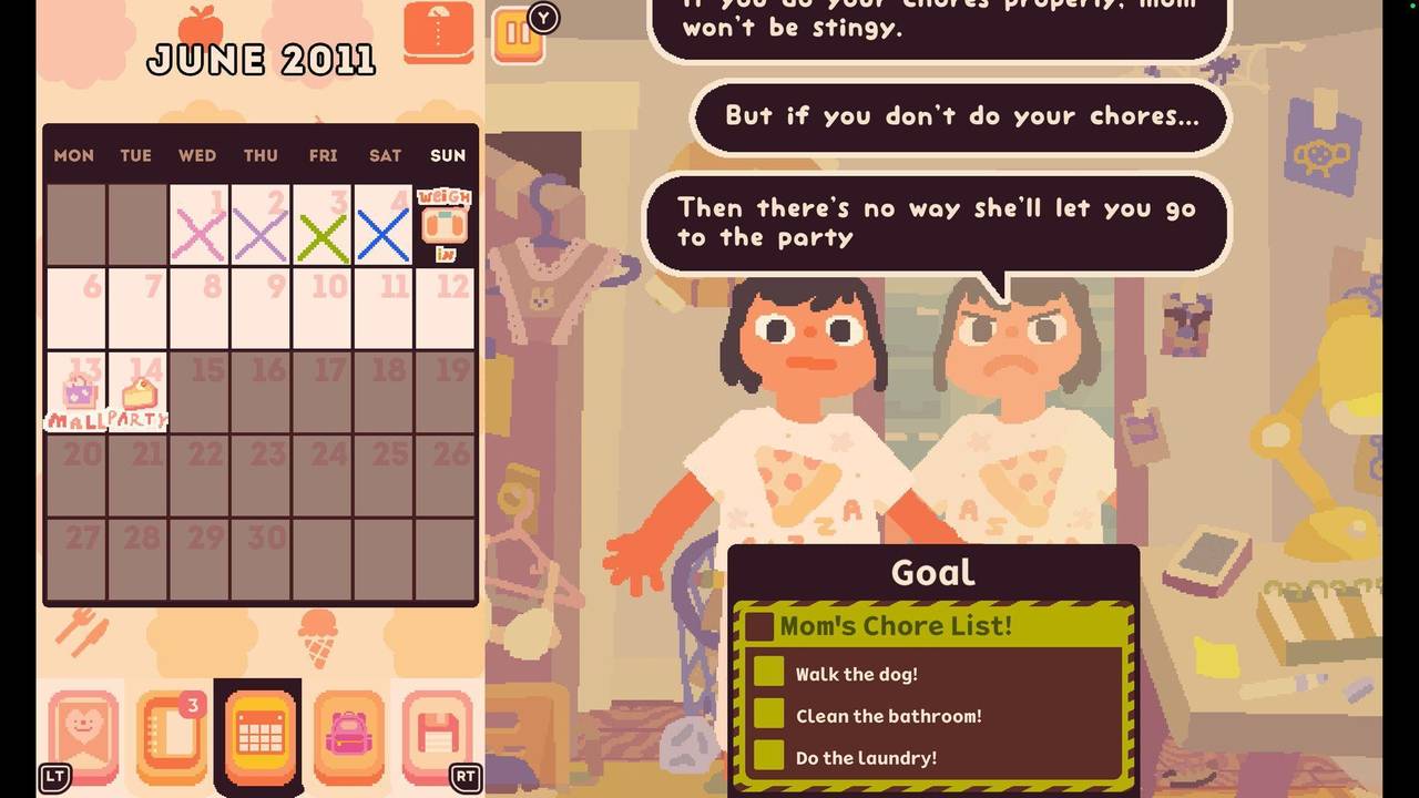 Wer zu viele Bites erwischt, kann sich in der Freizeit etwa dazu entscheiden, Sport zu treiben und die Bites für den Tag zu reduzieren. Mit Hausarbeit verdient Jenny Geld, das sie dann in Snacks oder Make-up investieren kann, was ihr Boni bringt. Und natürlich stehen auch immer wieder Schularbeiten auf der To-do-Liste für die aktuelle Woche. All das ist in unterhaltsame und süße Minigames verpackt.