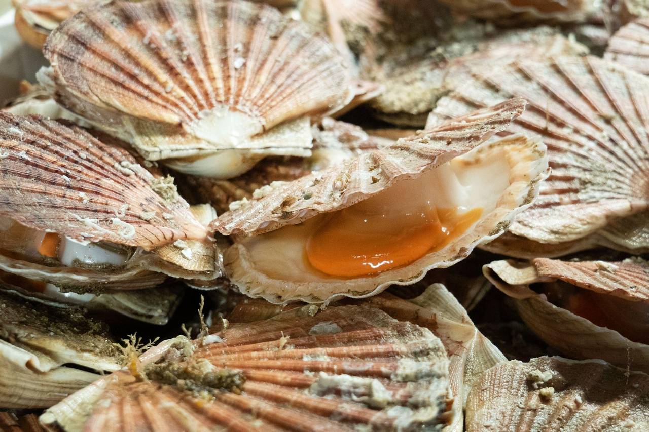 Das Wichtigste in der handtellergroßen Schale ist das weiße Muskelfleisch, die Nuss. Qualitativ zweite Wahl ist der orangefarbene, aromatisch intensivere Rogen. «Schon die Römer aßen die Muscheln, aber wir wissen nicht wie», so Lamort.