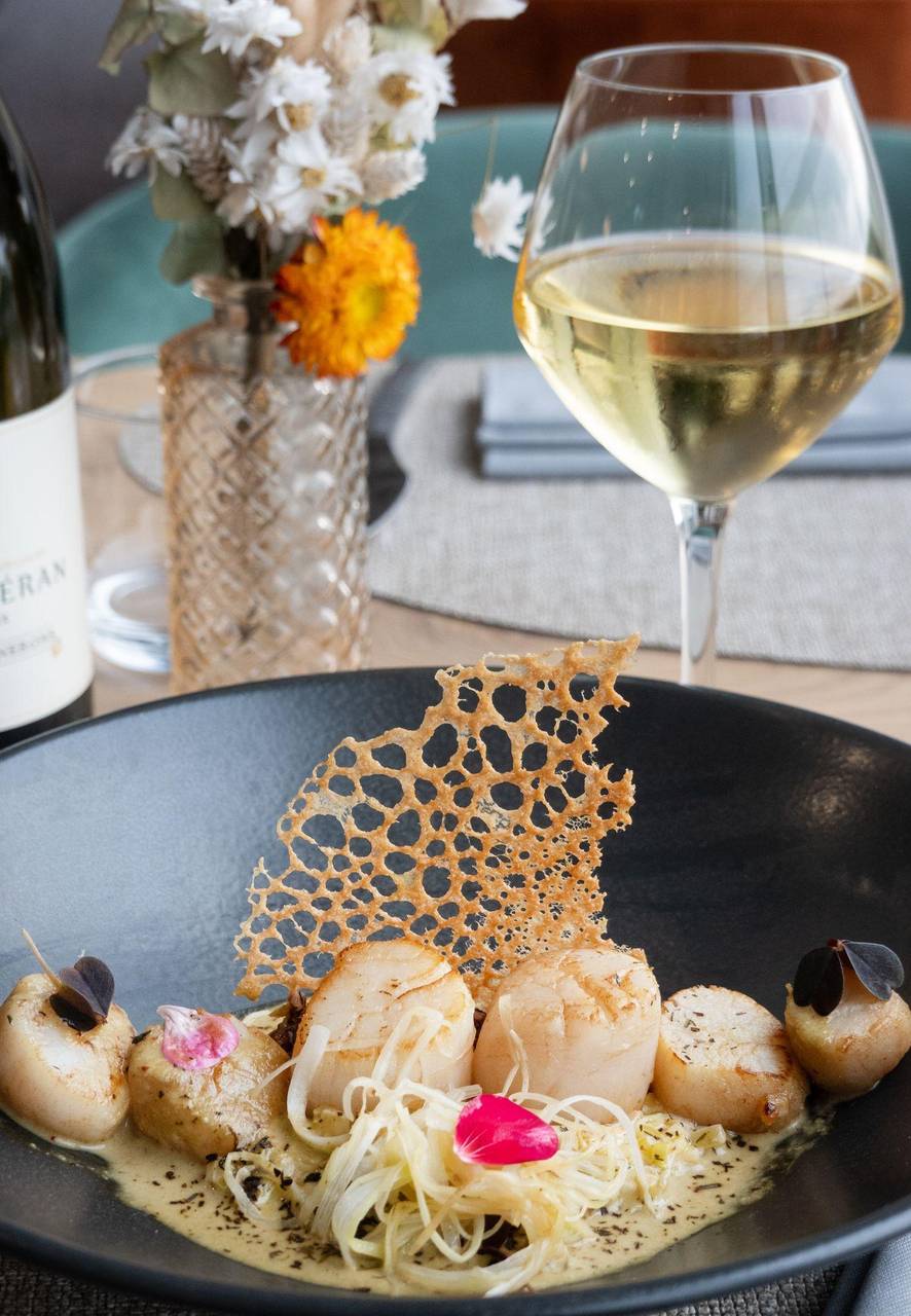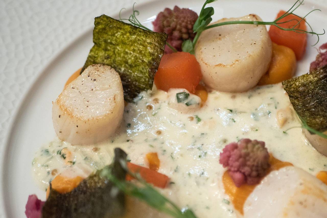Der Ablauf erfordert ein Höchstmaß an Präzision. «Etwa eine Minute auf jeder Seite», mahnt Leclerc an und wendet sie vorsichtig mit der Zange. Der größte Fehler bei der Zubereitung von Jakobsmuscheln sei es, die Nüsse zu lange anzubraten. «Dann werden sie hart und sind unangenehm zu kauen», so der Meister. Er serviert sie mit Vorliebe auf einem Bett aus Quinoa und Lauchgemüse. Ein harmonisches Ensemble.