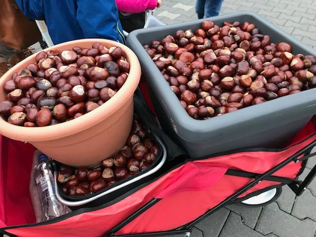 Auch in diesem Jahr gibt es wieder die große Kastaniensammelaktion bei Haribo. Ihr sammelt Kastanien oder Eicheln und bringt zu Haribo, da gibt´s dann Süßigkeiten dafür.