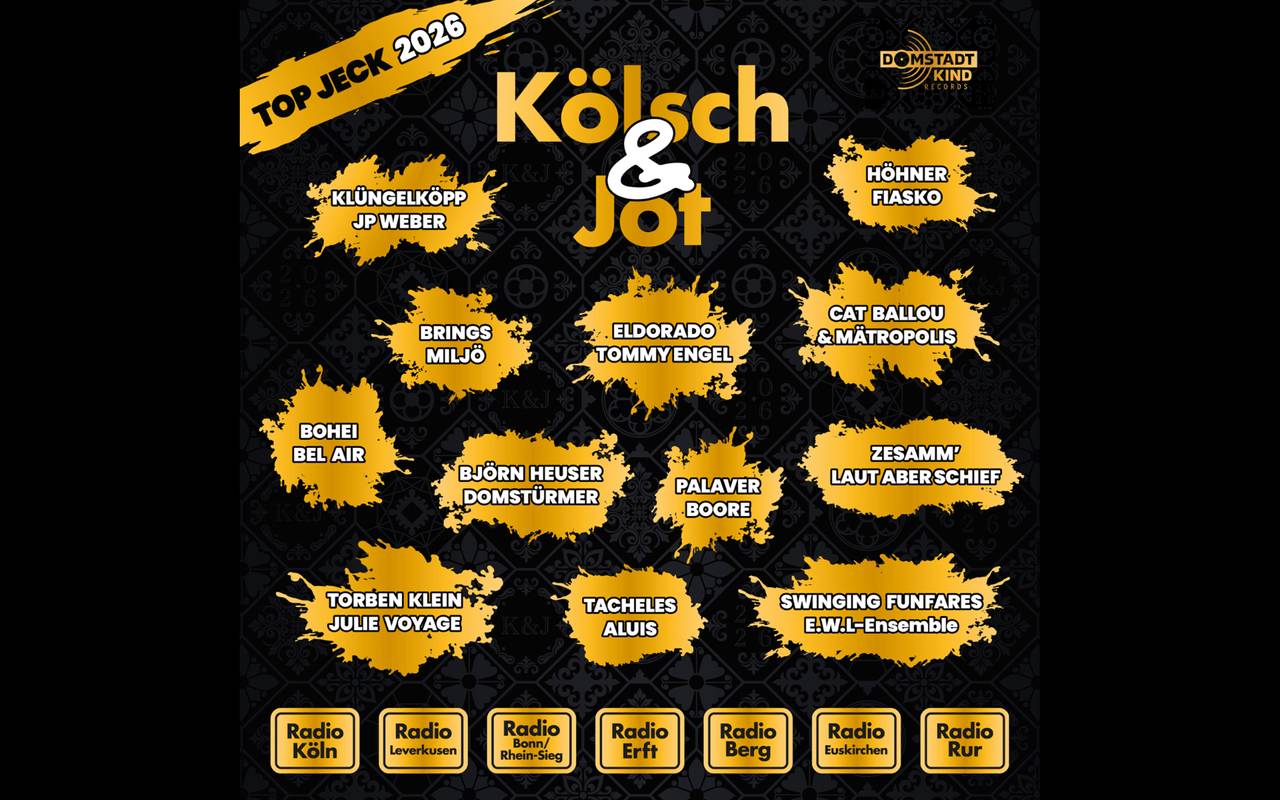 Die neue Karnevalssession kann kommen! Mit TOP JECK 2026 – Kölsch & Jot: Legenden treffen Nachwuchs erscheint die achte Ausgabe des beliebten Karnevals-Samplers. Eine musikalische Liebeserklärung an Köln, an den Fastelovend – und an alle, die Kölsch im Herzen tragen!