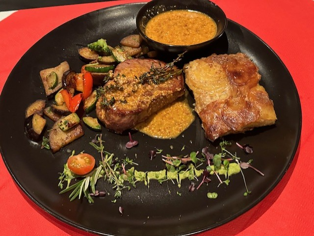 - Steak auf den Punkt gebraten mit einer würzigen Dijonsenf-Sauce