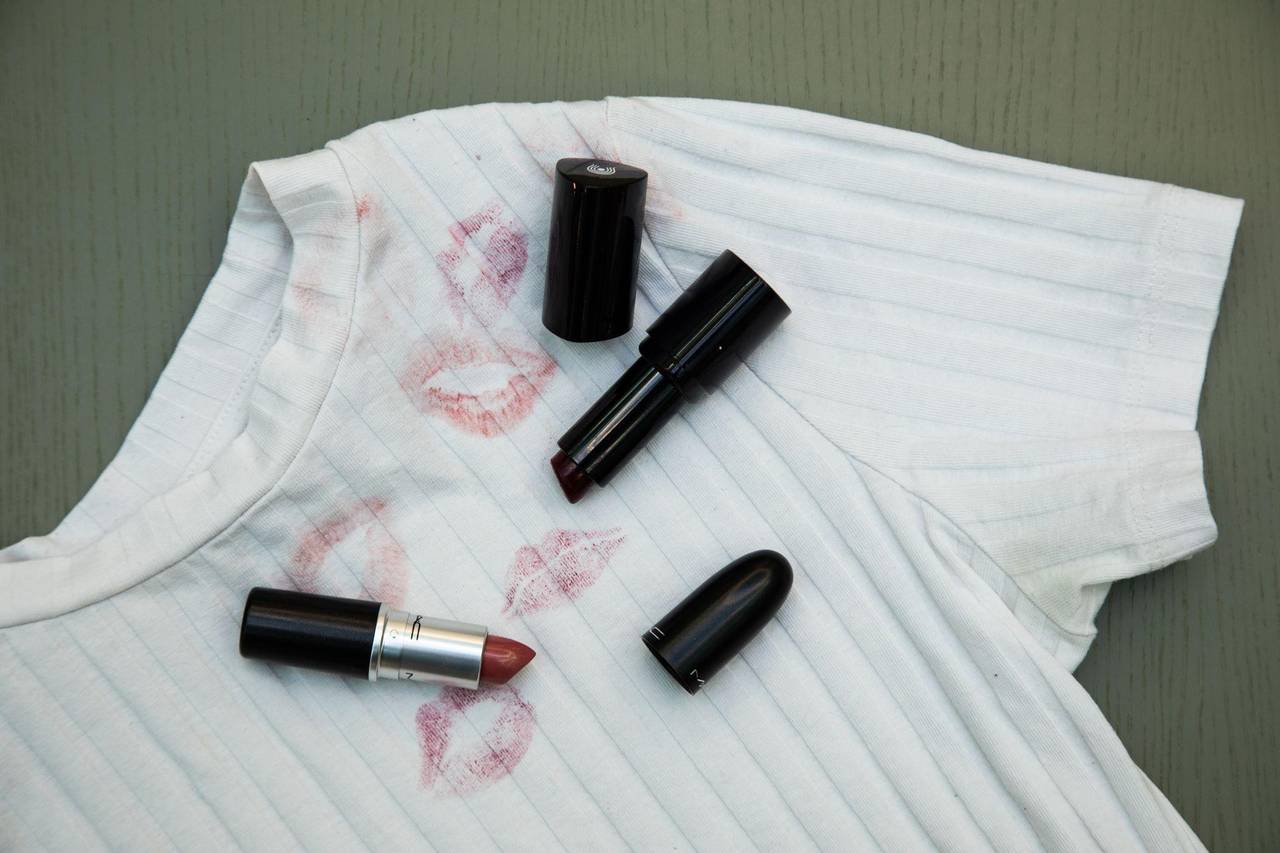 Auf Stoffen setzen sich die Farbpigmente des Lippenstifts in den Fasern fest und sind deshalb gut sichtbar.