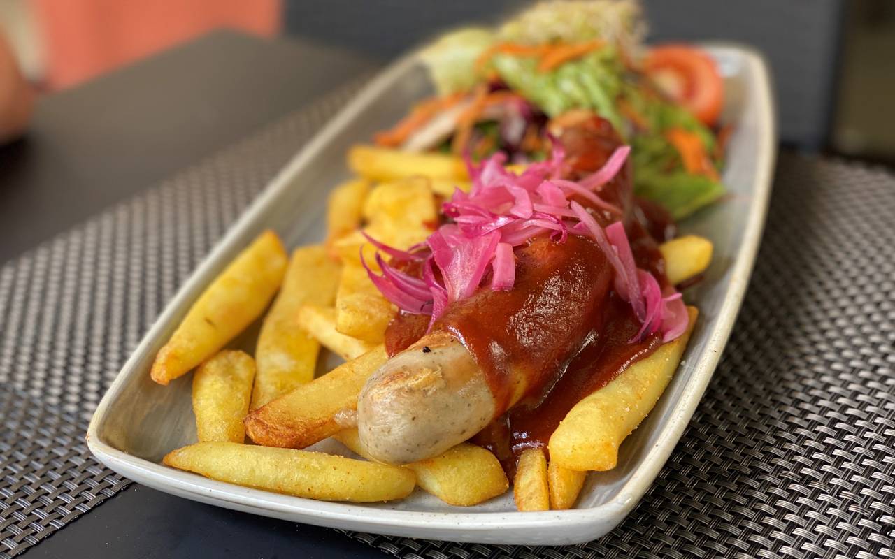 Den Mittagstisch hat unsere Gastrokritikerin Karin Krubeck von Bonngehtessen bereits getestet. Die wöchentlich wechselnde Mittagskarte läßt keine Langeweile aufkommen. Als sie zu Besuch war, genoß sie Klassiker, wie die Currywurst und das Philly Sandwich. Beides auf hohem Niveau mit toller Qualität, schwärmt sie.