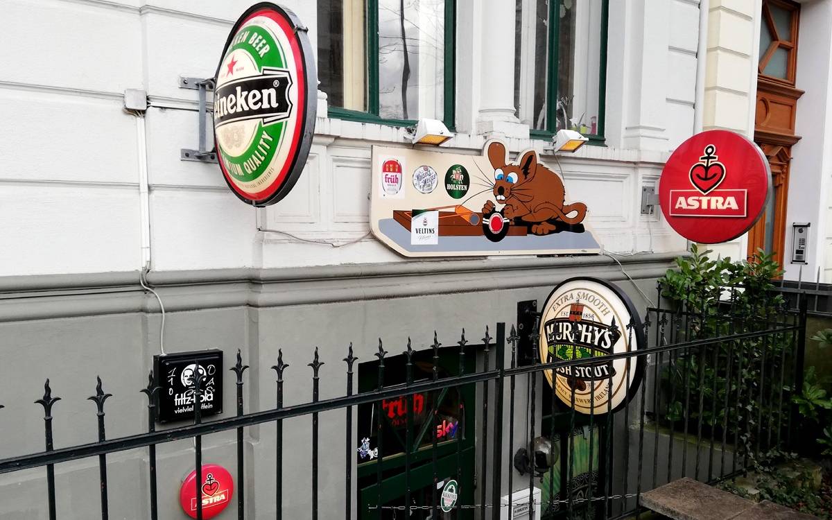 Direkt am Bahnübergang zur Weberstraße kann man schon seit über 25 Jahren die wenigen Treppen zum Keller der Mausefalle hinabsteigen. Innen wimmelt es von jahrelang angesammelten Deko-Gegenständen. Unser Kneipenblogger Holger Böckmann von welovepubs.de nennt die Mausefalle "Bonns einzige Hafenkneipe". Das muss man zwar mit einem Augenzwinkern sehen, sagt er, aber der Wirt ist großer Fan der Hansestadt und des HSV – und natürlich gibt es passend dazu auch Bier aus dem Norden, z.B. Holsten-Pils.