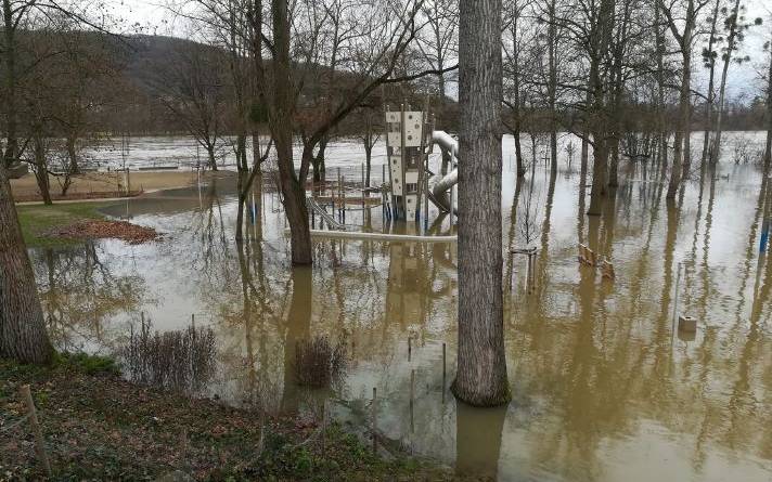 In Bad Honnef gibt Streit um den Spielplatz auf der Insel Grafenwerth. Das Rheinhochwasser hat die Spielgeräte an der Nordspitze der Insel unter Wasser gesetzt, der Bund für Umwelt und Naturschutz behauptet jetzt, dass der Spielplatz dadurch Schaden genommen habe. Unter anderem habe das Fundament einige Bänke nachgegeben.