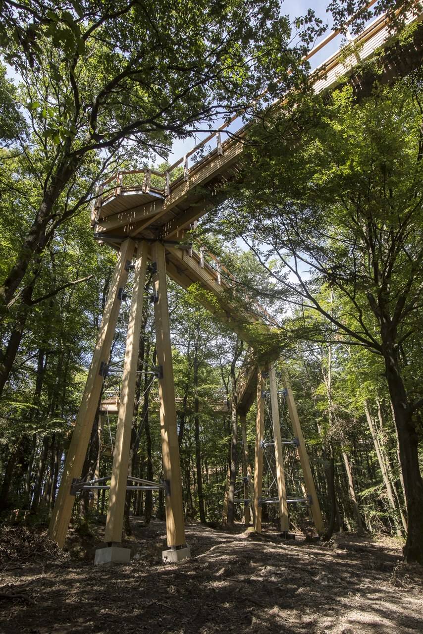 In bis zu 23 Metern Höhe könnt ihr die Bäume mal aus einer ganz anderen Perspektive sehen. Außerdem gibt es einen insgesamt 40 Meter hohen Aussichtsturm mit einer Aussichtsplattform in 34 Metern Höhe. Um das Gelände führt ein Waldweg, der alle Sinne ansprechen soll. Unter anderem gibt es Spieltunnel, einen Heckenirrgarten, einen Abenteuerspielplatz und einen Kräutergarten. Wenn ihr länger bleiben wollt, könnt ihr im Park auch übernachten. Es gibt fünf Baumhäuser, drei Dörfer mit jeweils vier Hütten und ein Familien- und Seminarhaus.