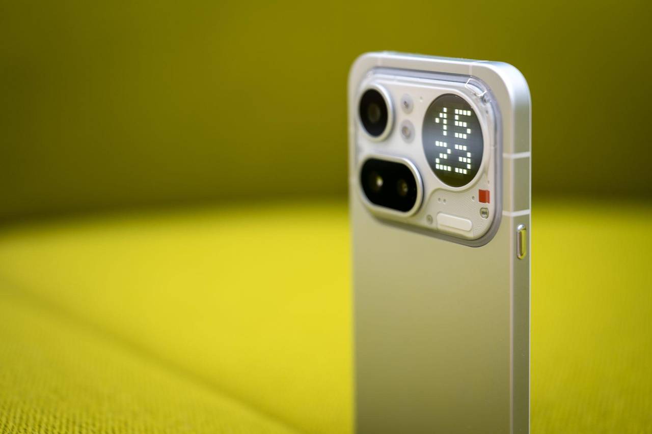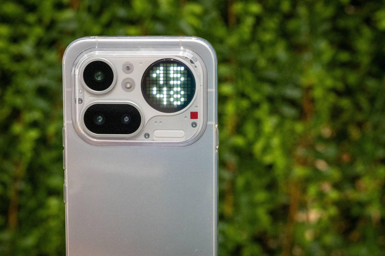 Dieses Design bleibt im Kopf: Drei Kameras und ein großes Punktdisplay für Benachrichtigungen, Uhrzeit und Spielereien. Und ein roter Blinkpunkt für Videoaufnahmen.© Nico Tapia/dpa-tmn