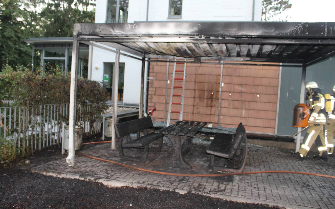 Dabei wurden auch ein Sichtschutz und eine Hecke beschädigt. Die Feuerwehr hatte den Brand schnell unter Kontrolle, trotzdem wurde er vollständig zerstört. Der Schaden liegt bei mehr als 20.000 Euro. Zeugen hatten zwei junge Männer beobachtet, die auf dem Holztisch der Laube mit Feuer und Papier hantierten. Beide sollen zwischen 15 und 20 Jahre alt sein. Zeugen sollen sich bei der Kreispolizei melden.