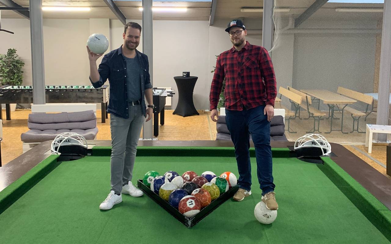 Ein weiches Fußgelenk, das geschulte Auge und jede Menge Spaß: Das ist Poolball. Billiard spielen auf einem überdimensionalen Tisch mit den Füßen. In Deutschlands einziger Poolball-Arena in Köln haben unsere Reporter Glen Bamford und Nico Jansen die Funsportart getestet.