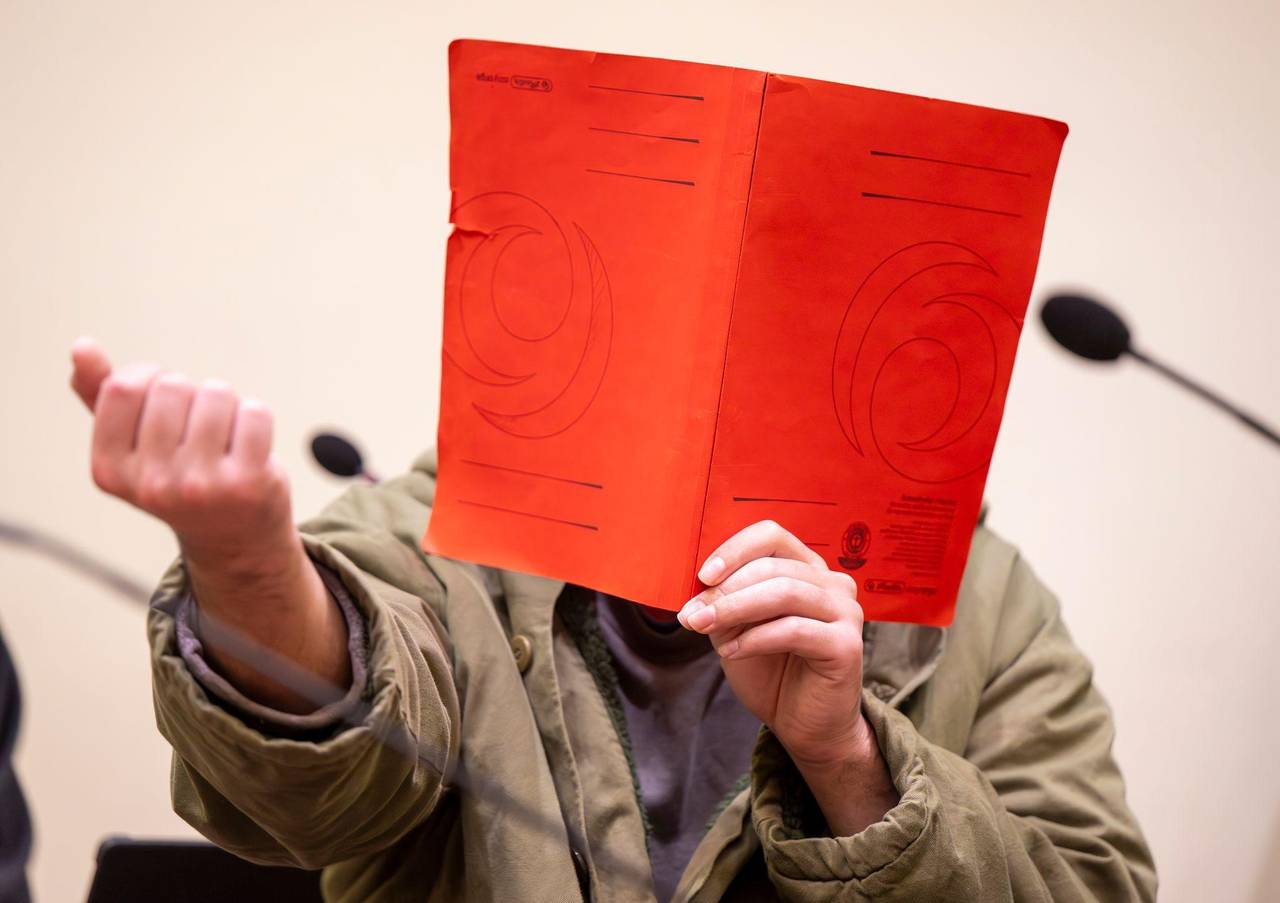 Der Angeklagte verdeckte sein Gesicht zum Prozessauftakt zunächst mit einer Mappe.