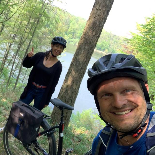 Weil das Wetter so genial ist fahre ich auf eigene Faust weiter und verlasse die Rheinische Apfelroute. Ich hab Bock auf See! In gut einer Stunde (entlang einer landschaftlich nicht ganz so reizvollen Strecke) habe ich mein Tagesziel erreicht. Den Bleibtreu See in Erftstadt. Inklusive Wasserskianlage. Mach ich aber nicht. Ich gönn mir ein Radler...was sonst? Ein toller Tag, was soll ich sagen? Nicht spektakulär aber frischluftig!