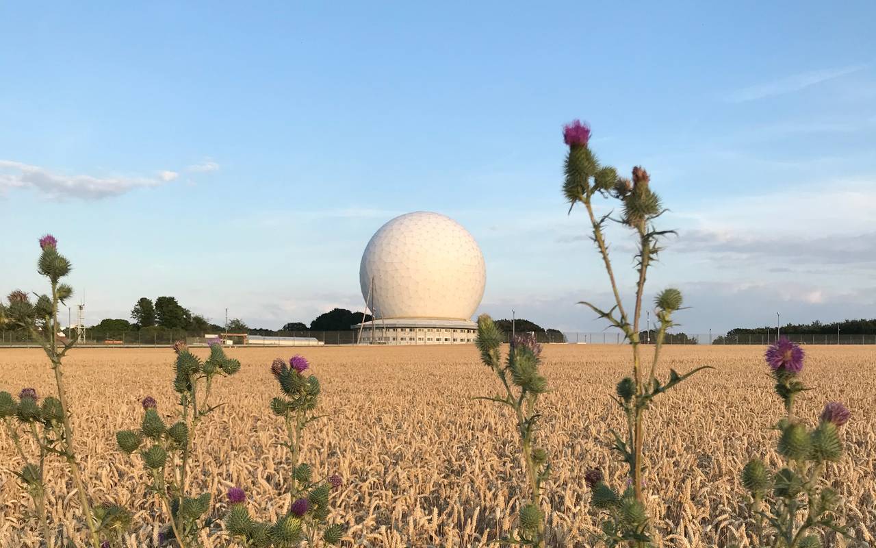 Ein bisschen schade ist es gewesen, dass gerade bei dieser landschaftlich sehr schönen Strecke das Wetter nicht mitgespielt hat. Vom Start aus bin ich auf das Radom zugeradelt. Das Wahrzeichen der Region. Leider lag es im grauen Dunst. Danke an RBRS-Hörerin Elke, die mir ein viel tolleres Foto geschickt hat.