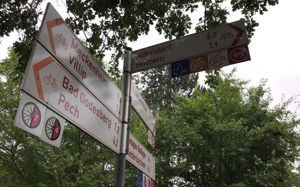 Heute steht die 4.Etappe an. Nachdem ich zuvor durch Rheinbach und Meckenheim geradelt bin wäre der logische Anschluss heute eigentlich gewesen, von Meckenheim nach Wachtberg zu fahren. Ich habe mich heute Morgen allerdings bei der Rhein-Voreifel-Touristik angekündigt um über die Apfelroute zu sprechen. Deshalb also erst Wachtberg und dann weiter nach Meckenheim. Das Etappenziel wird heute die Brennerei Brauweiler sein.