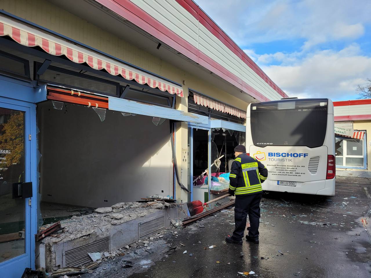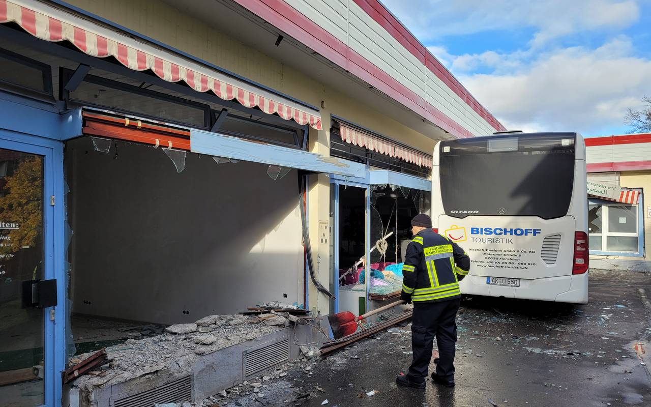 Sankt Augustin: Bus zerstört Schaufensterscheiben