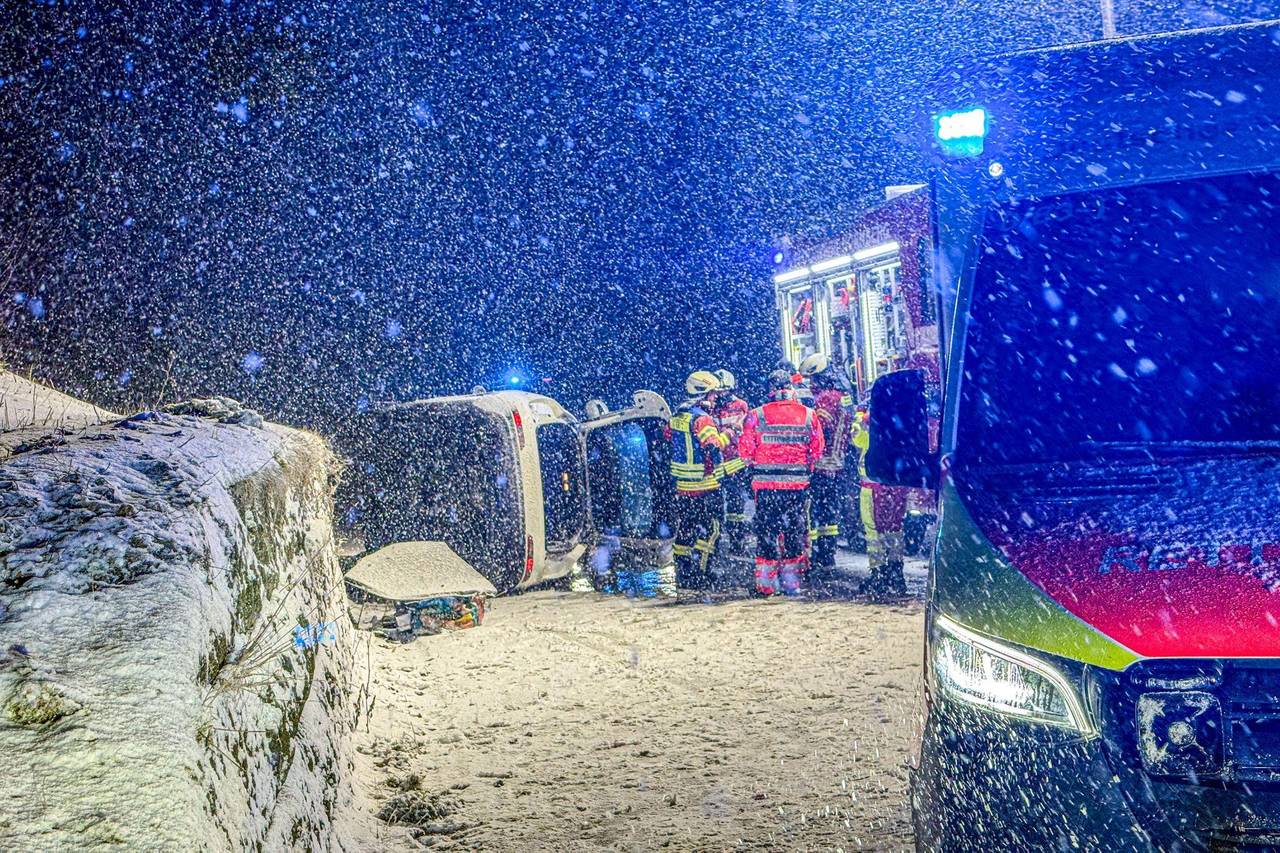 In Bayern kippte auf der schneebedeckten Autobahn 93 bei Wernberg-Köblitz der Anhänger eines Lastwagens und riss auf - auf der Fahrbahn in der Oberpfalz verteilte sich eine Ladung Lachs.
