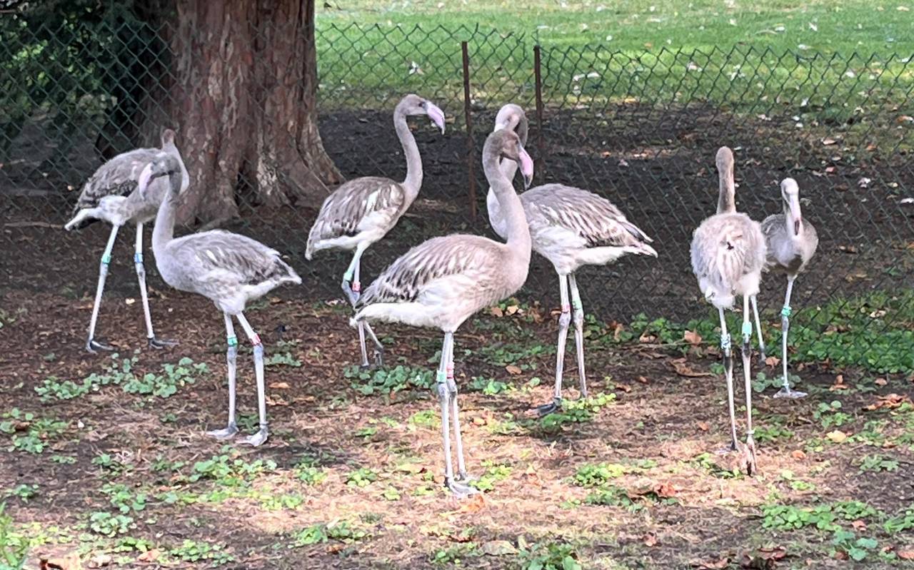 Sieben "frische" Kuba-Flamingos im Kölner Zoo